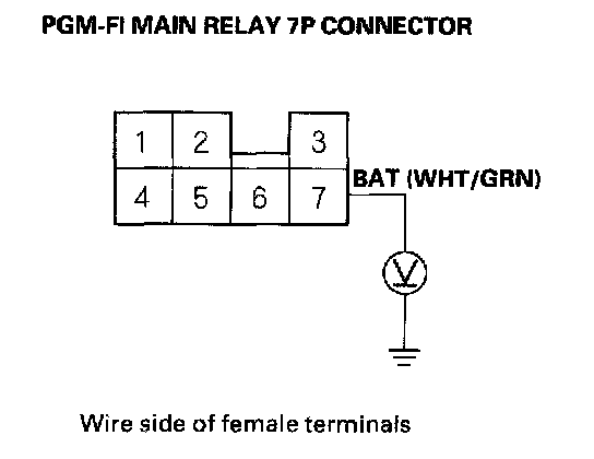 3. Measure voltage between body ground and PGM-FI main relay 7P connector terminal No. 7.