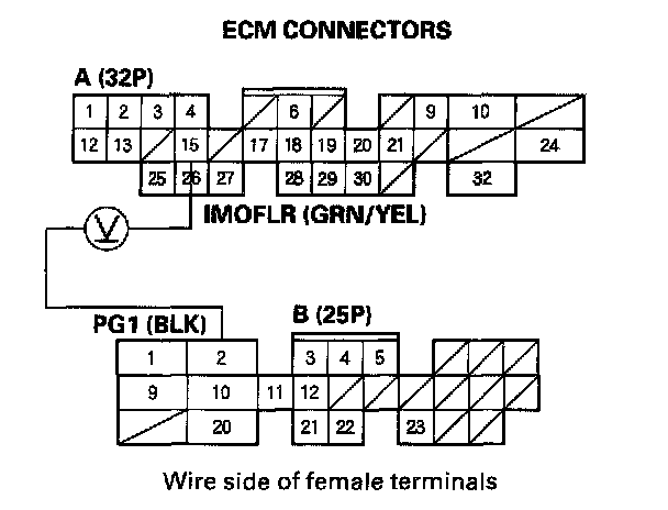 11. Reconnect ECM connector A (32P) and the PGM-FI main relay 7P connector.