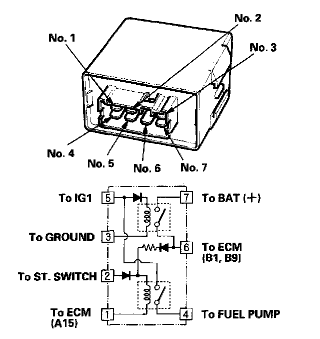 NO - Repair open in the wire between the PGM-FI main relay and the No. 2 FUEL PUMP SRS (ISA) fuse.