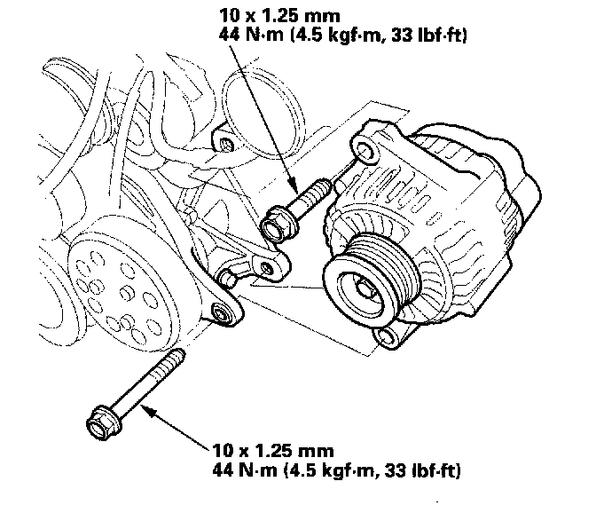5. Disconnect the 4P connector (A) from the alternator (B), and disconnect the BLK wire from the alternator B terminal (C).