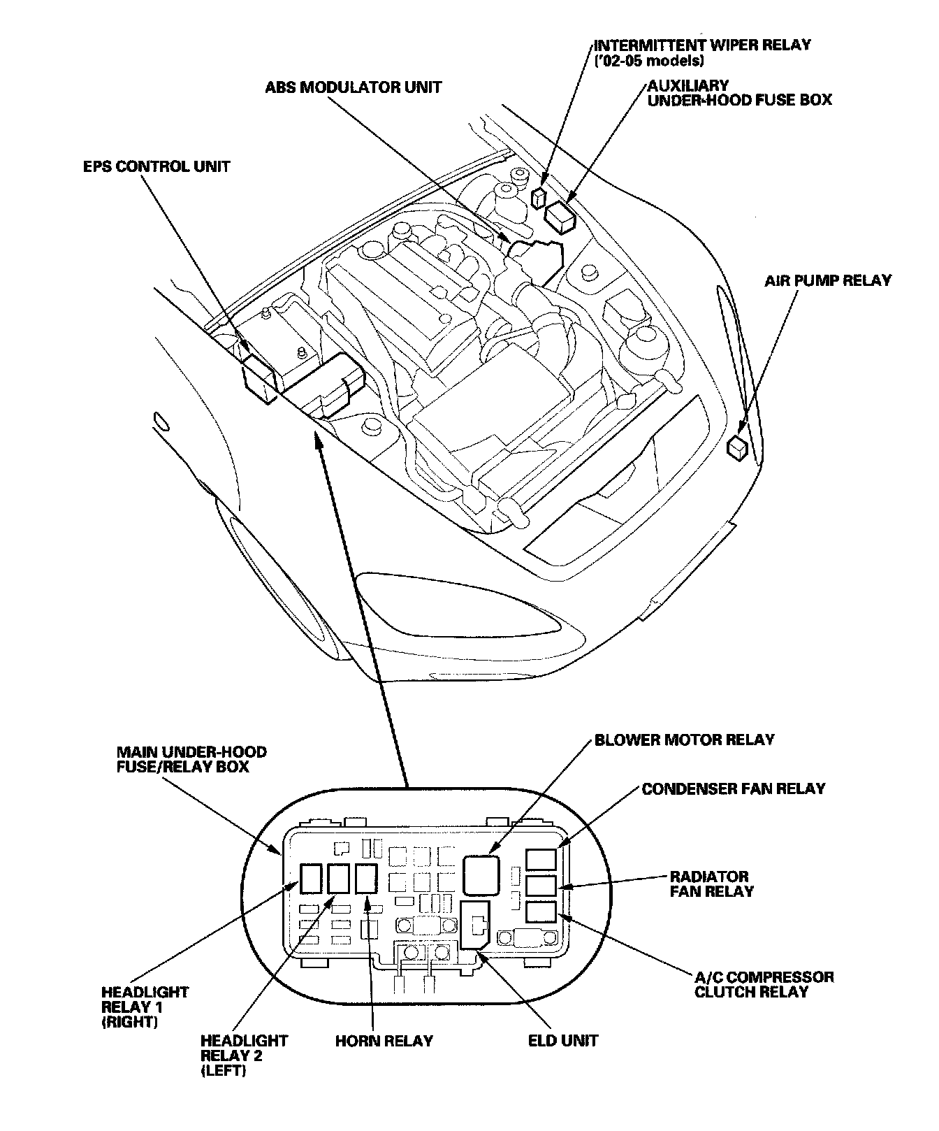 Relay And Control Unit Locations - Engine Compartment: