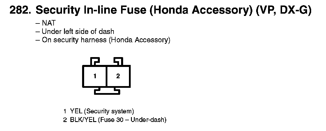 282. Security In-line Fuse (Honda Accessory) (VP, DX-G):