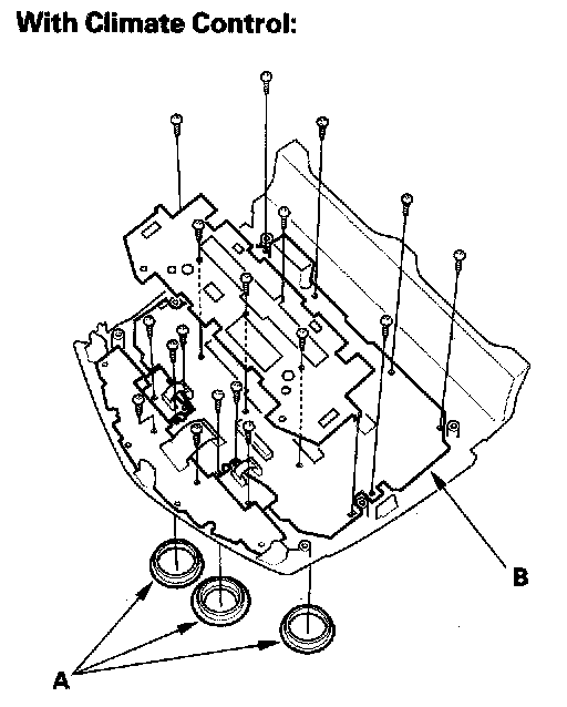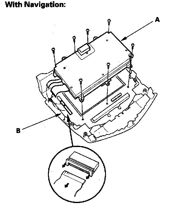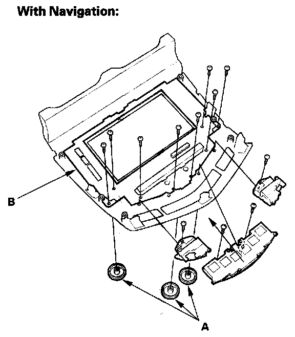 3. With navigation system: Remove the mounting screws and display unit (A) from the printed circuit board (B).