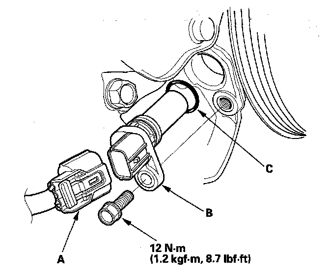 3. Install the sensor in the reverse order of removal with a new O-ring (C).
