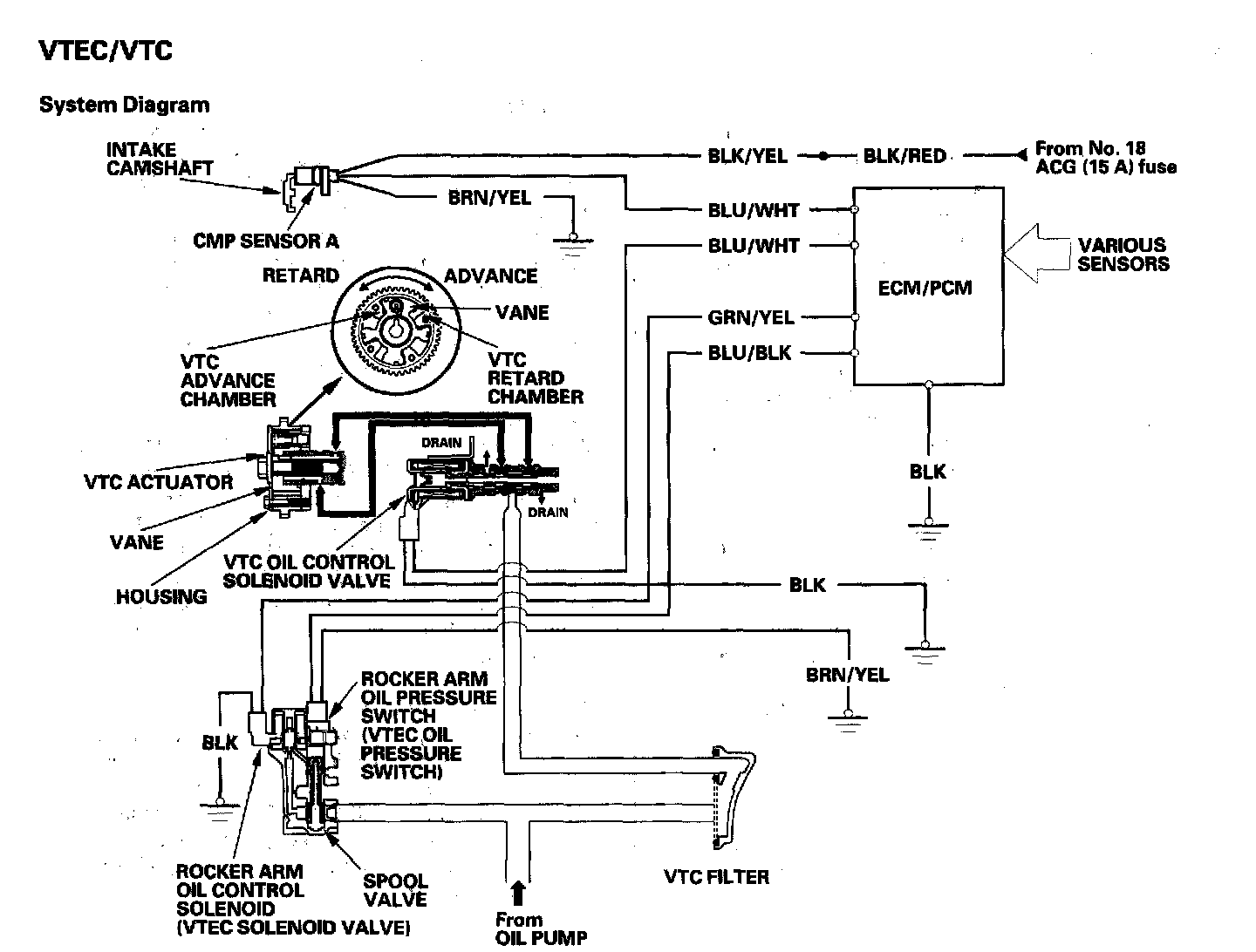 - The VTC changes the phase of the intake camshaft via oil pressure. It changes the intake valve timing continuously.