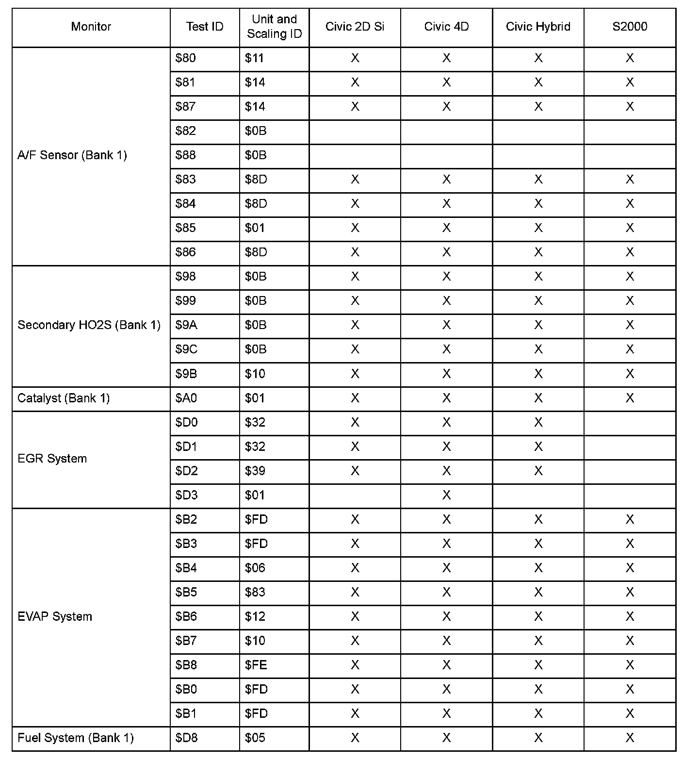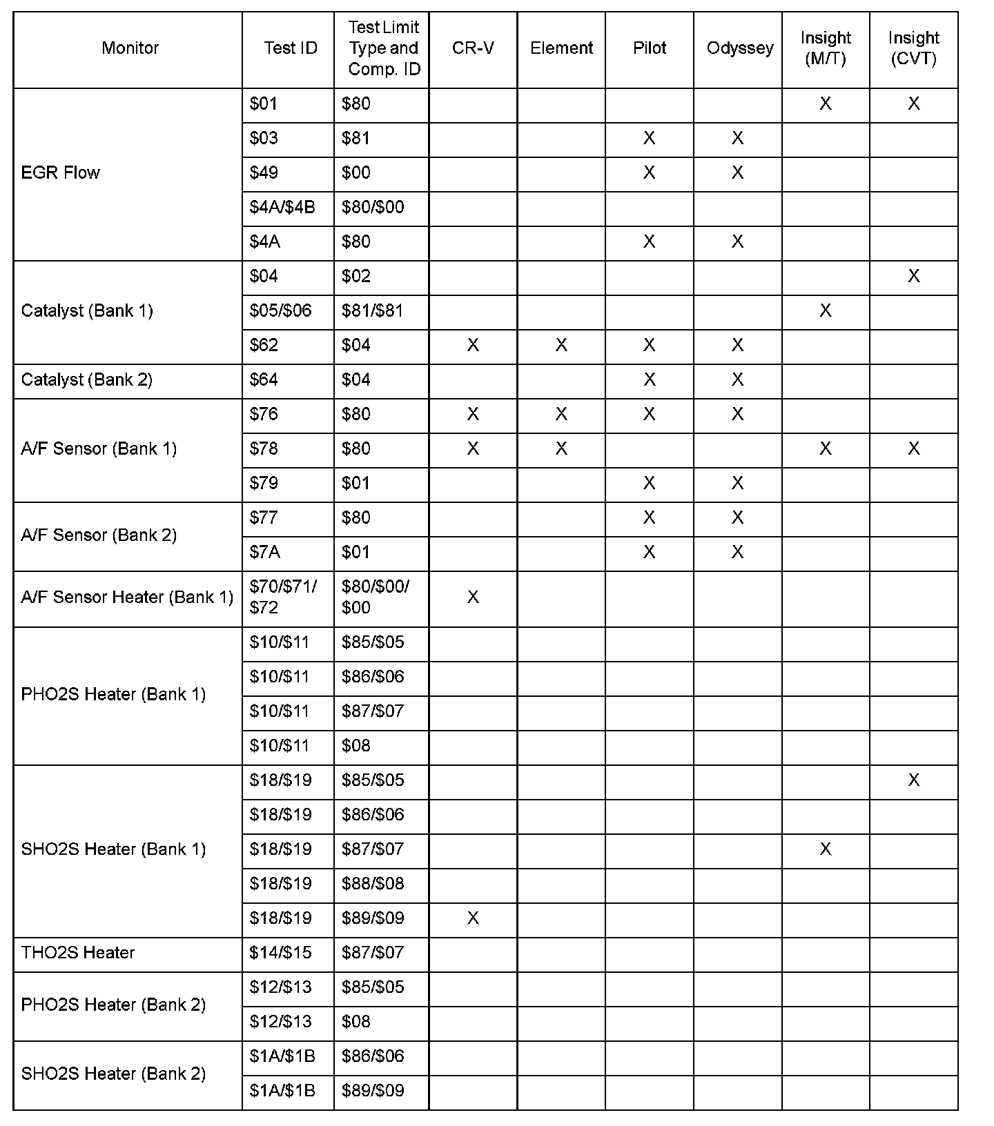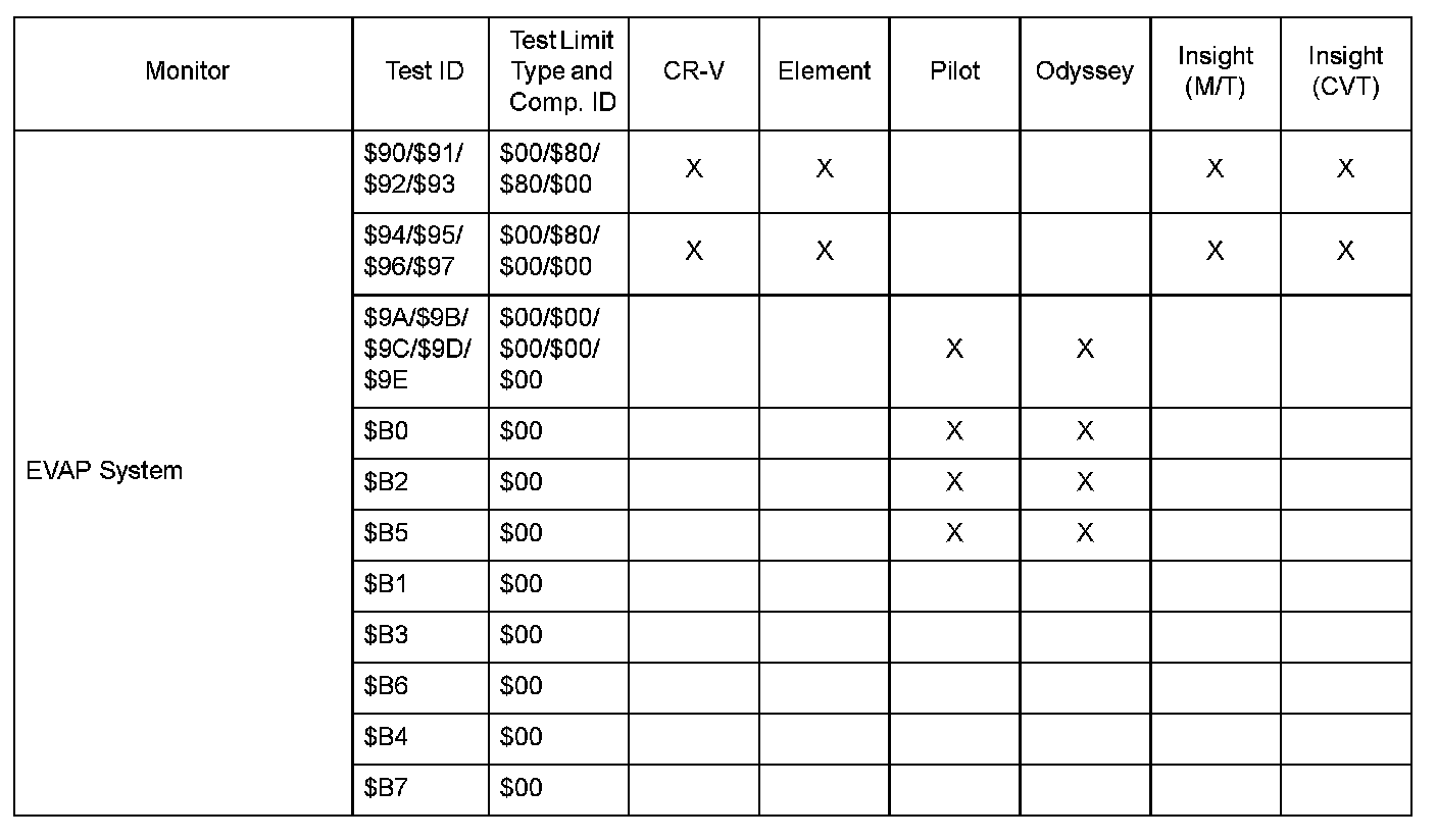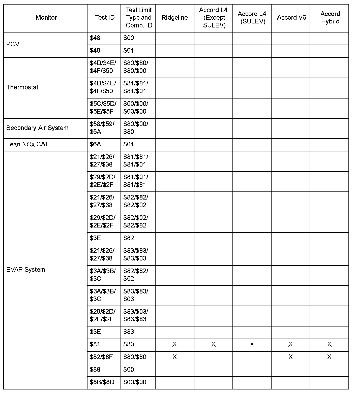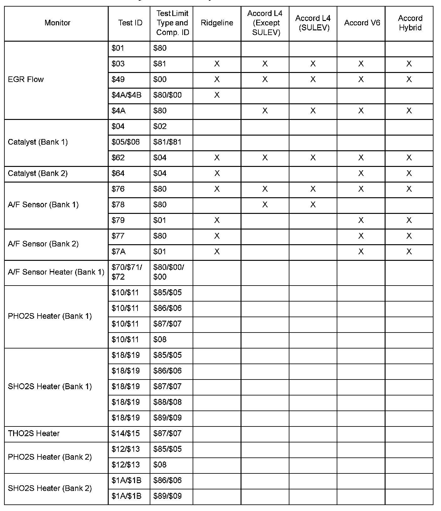 SAE J1979 Mode/Service $06 Test Information: All 2006 Hondas