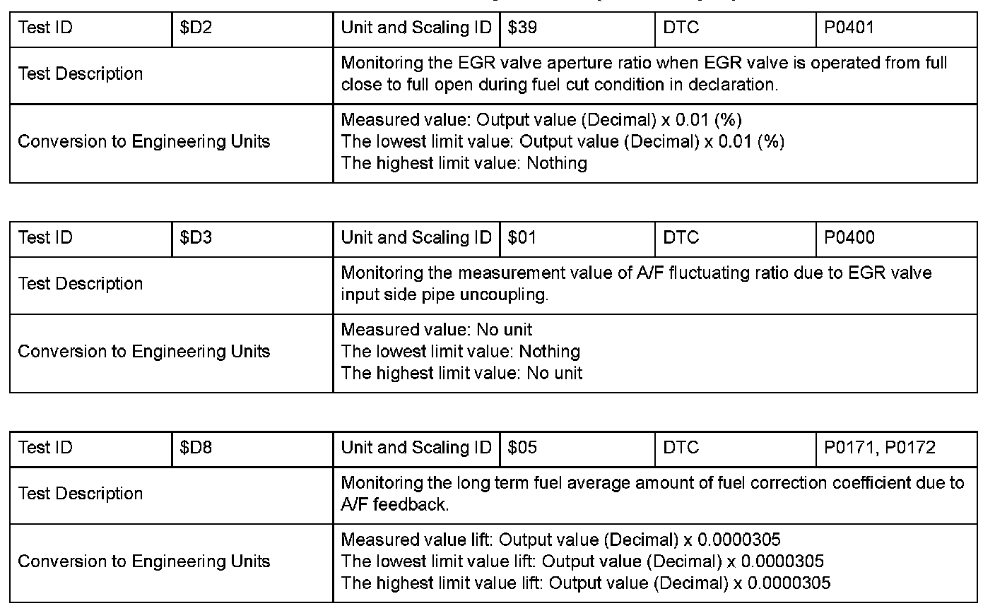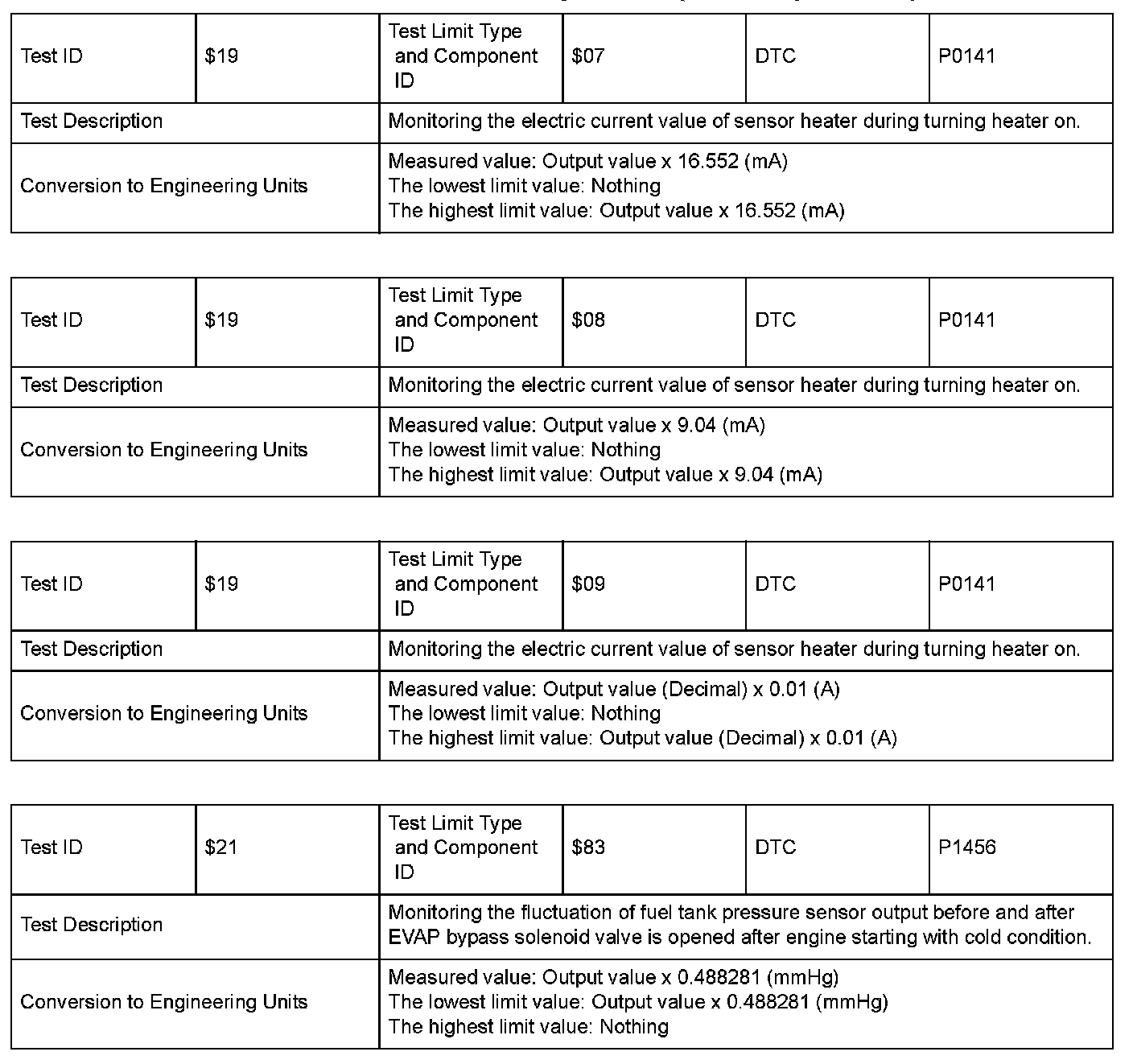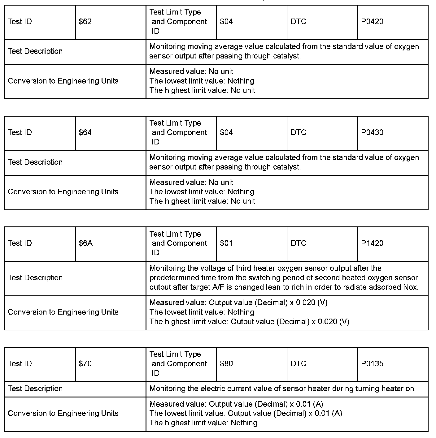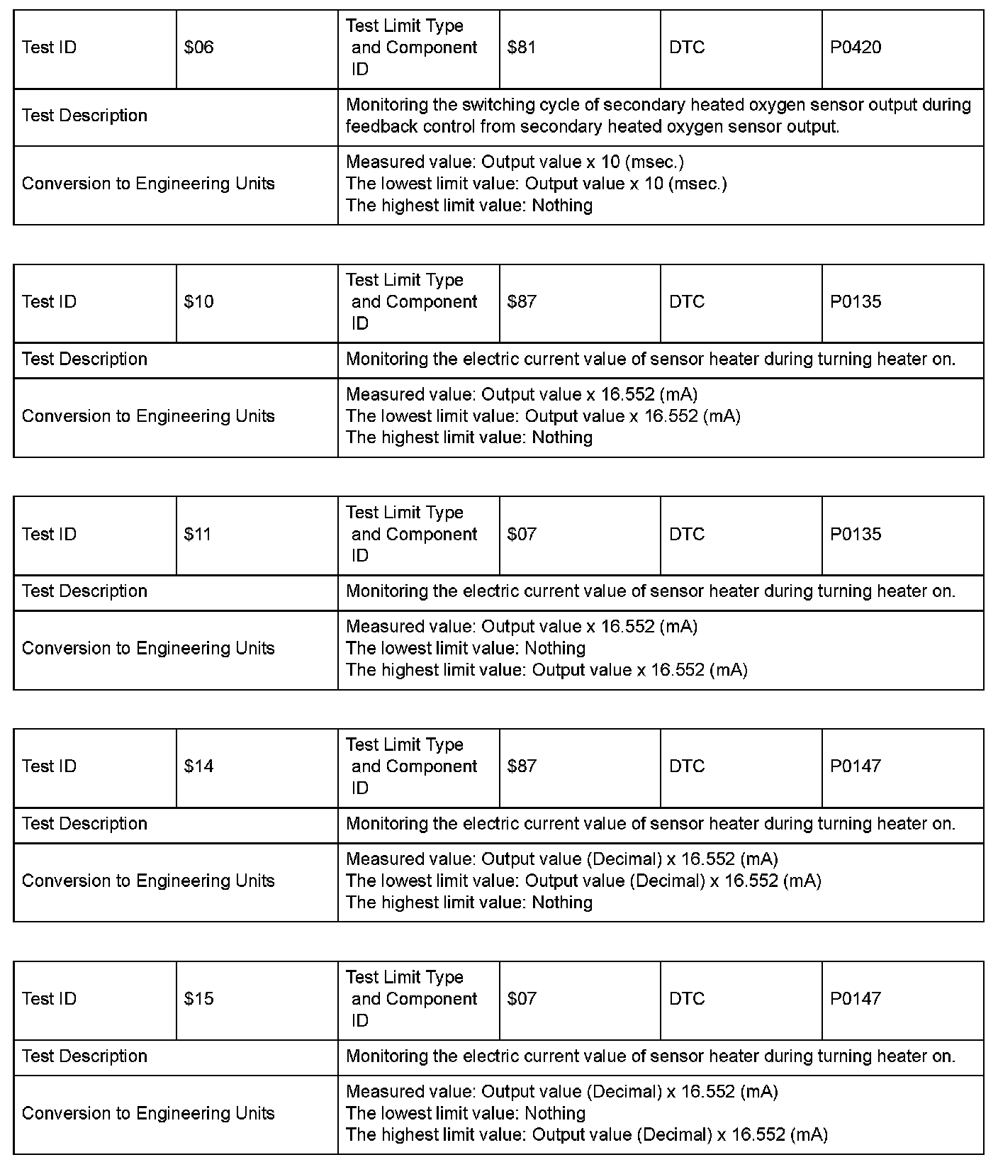 SAE J1979 Mode/Service $06 Information by Test ID (for Group 3)