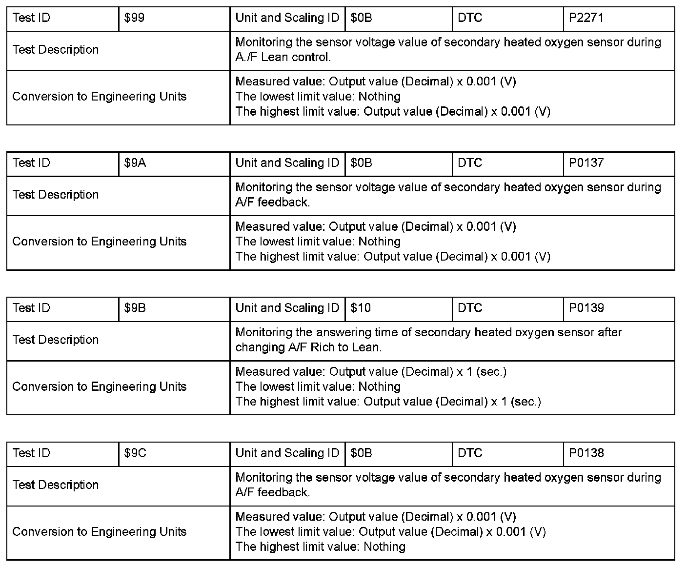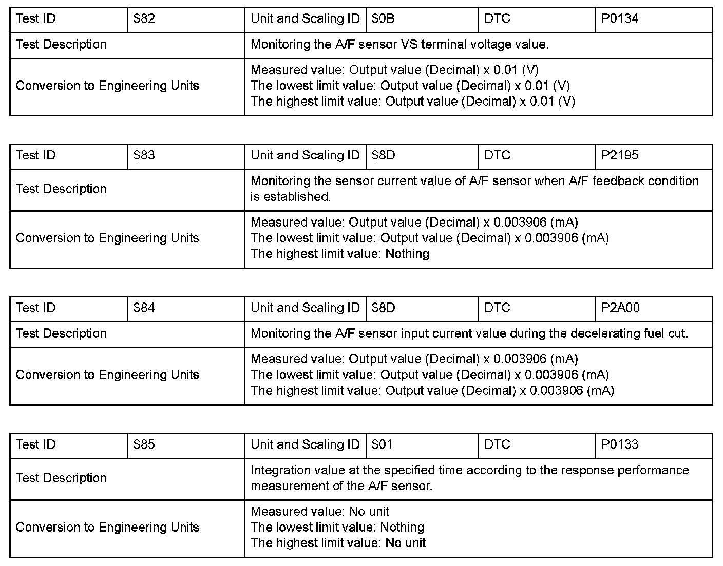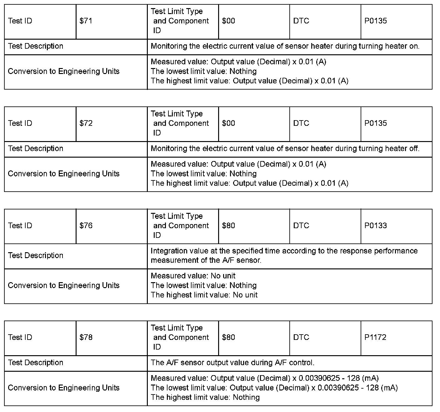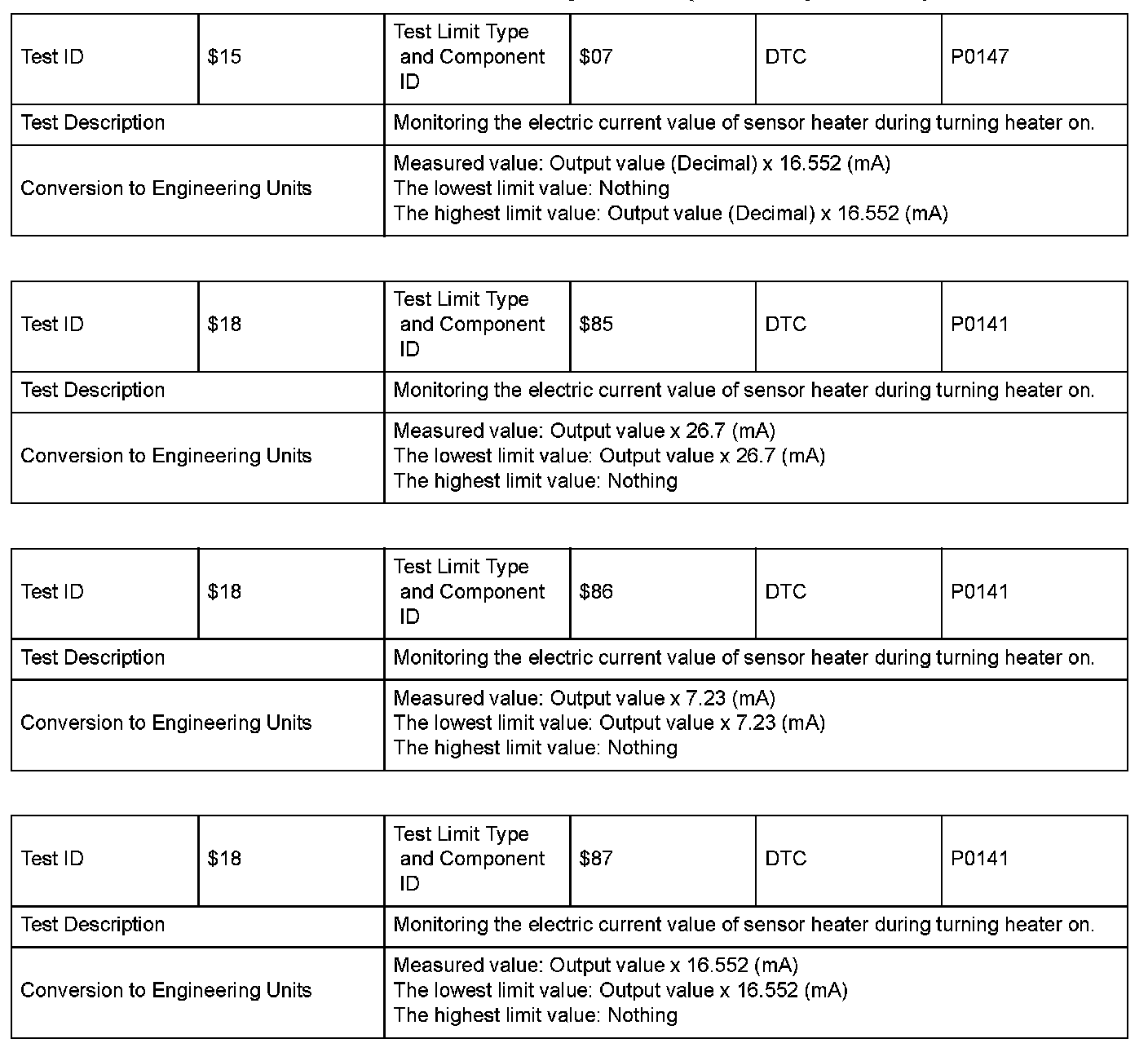 SAE J1979 Mode/Service $06 Information by Test ID (for Group 3)