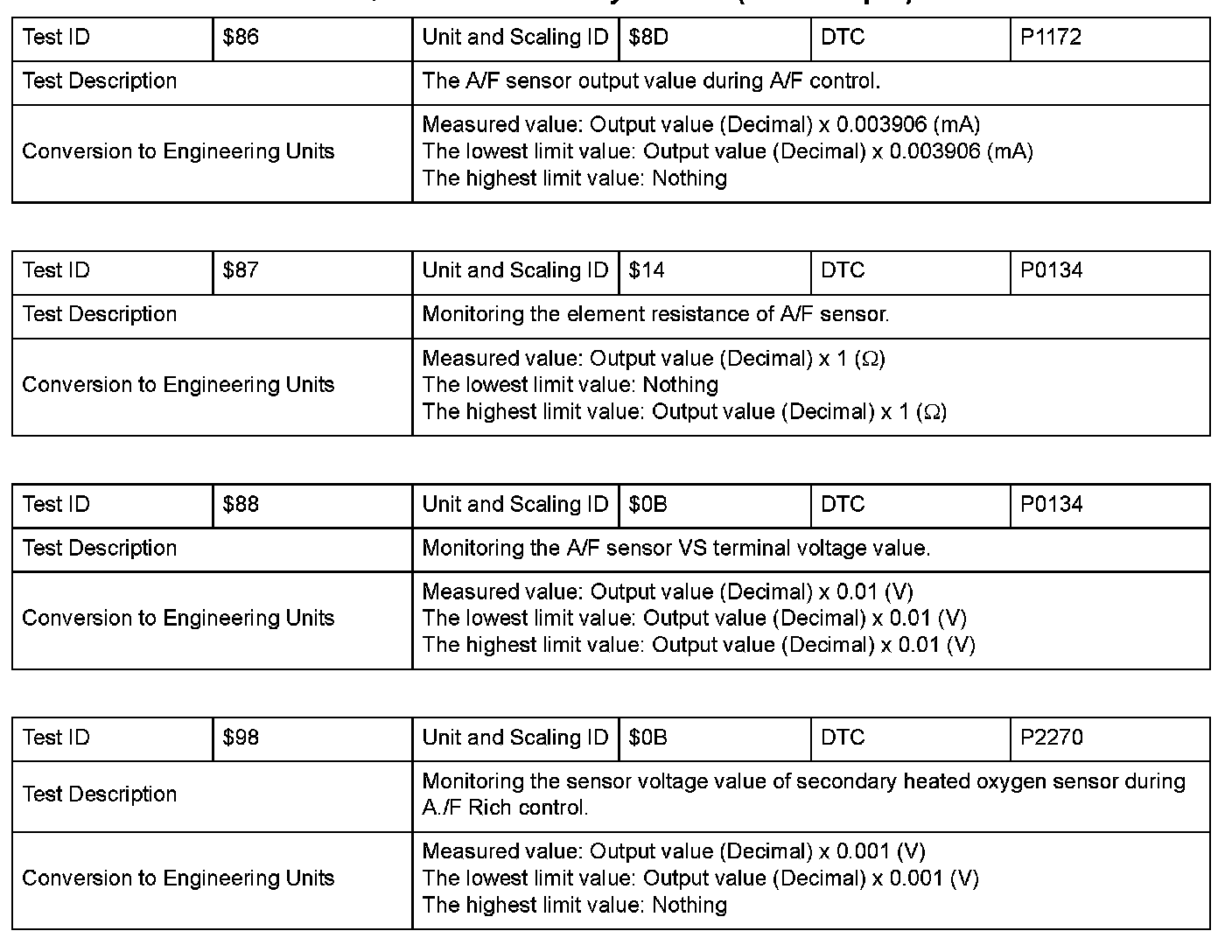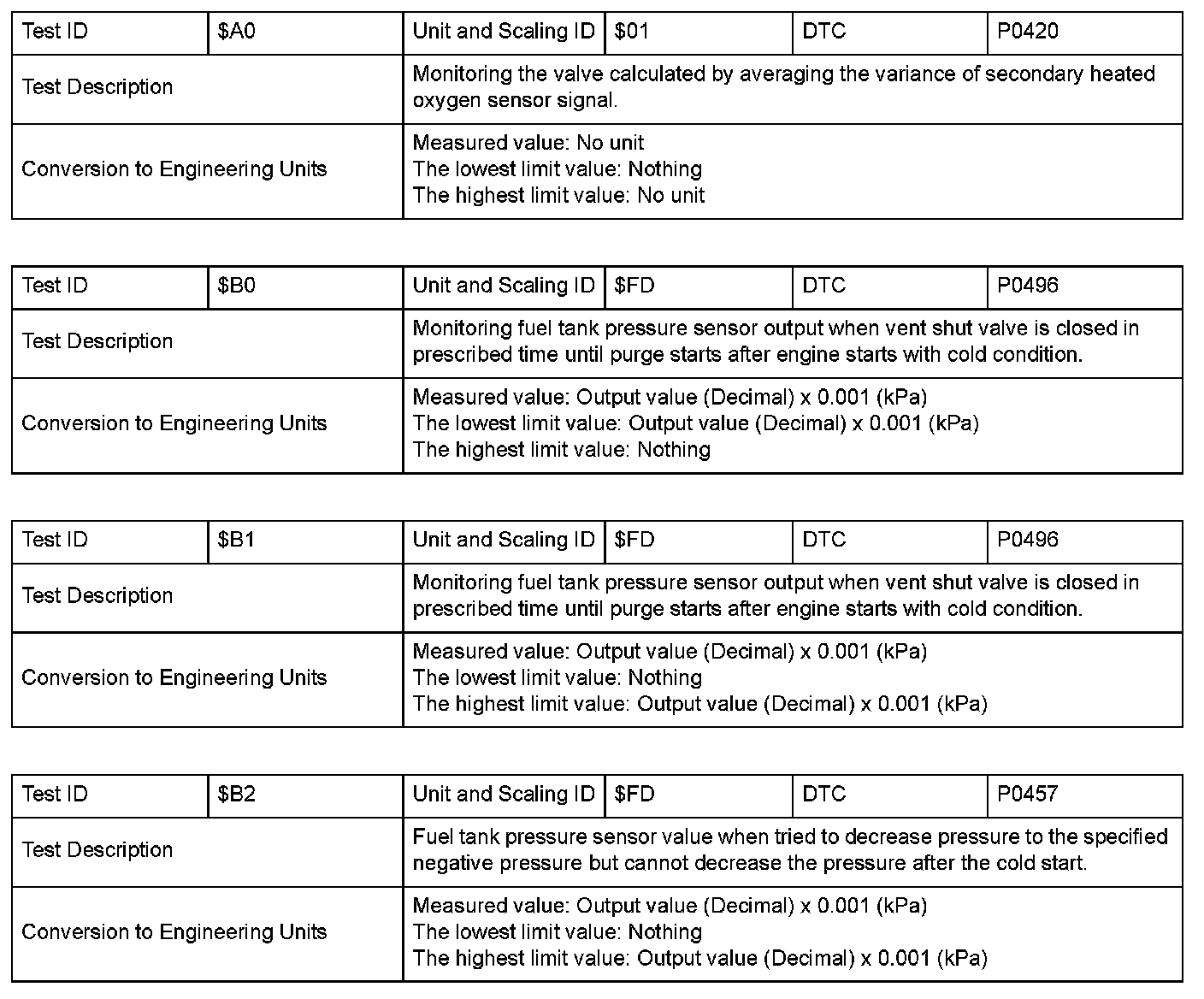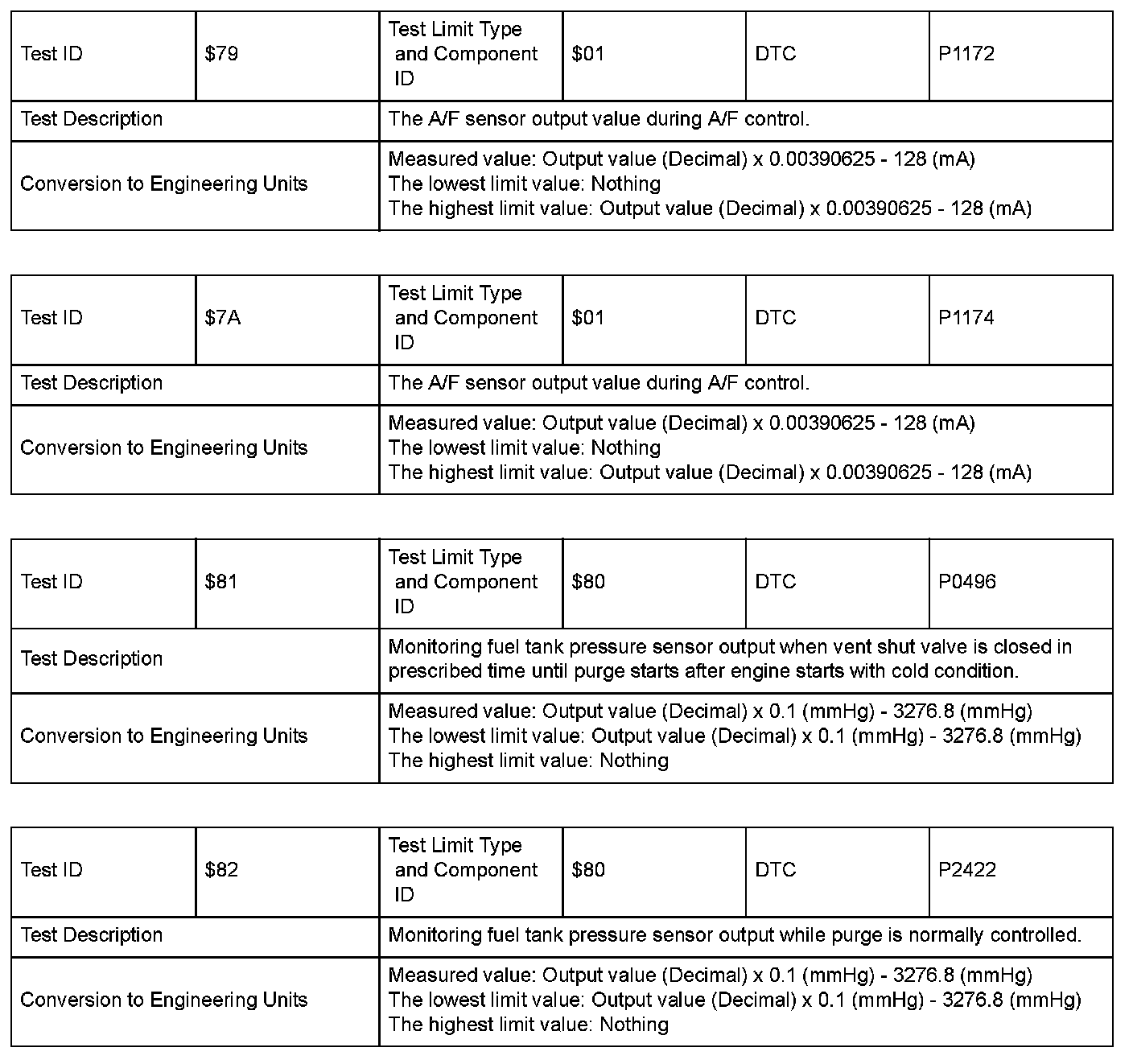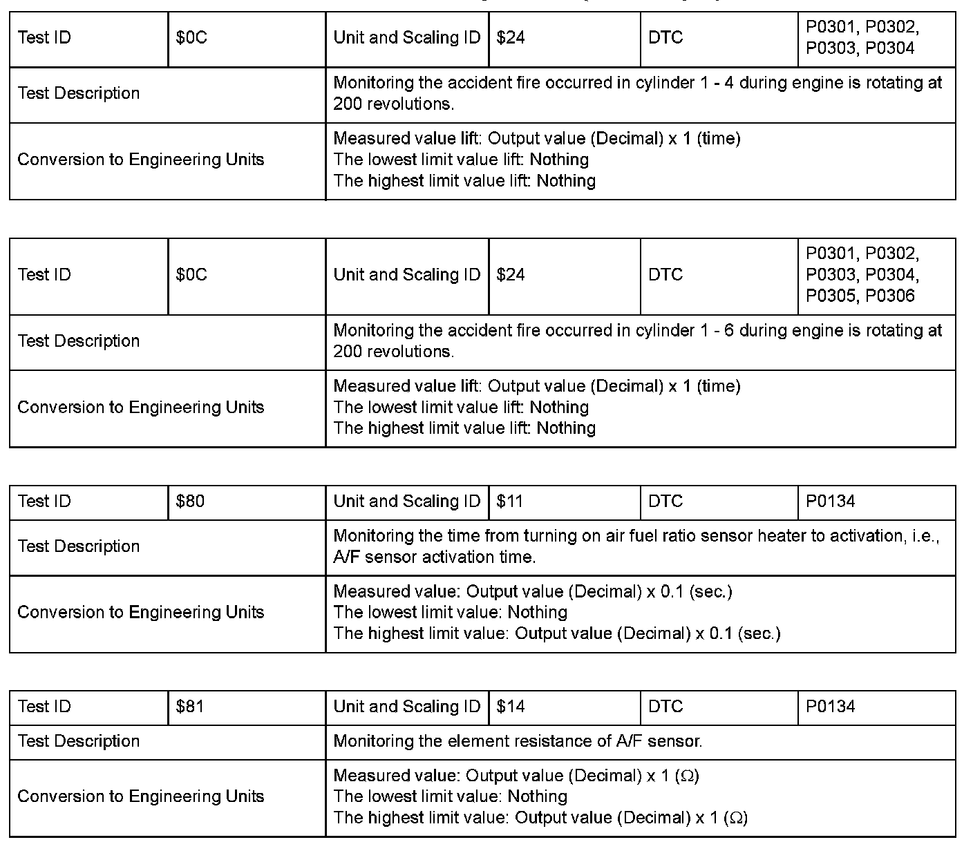 SAE J1979 Mode/Service $06 Information by Test ID (for Group I and 2)