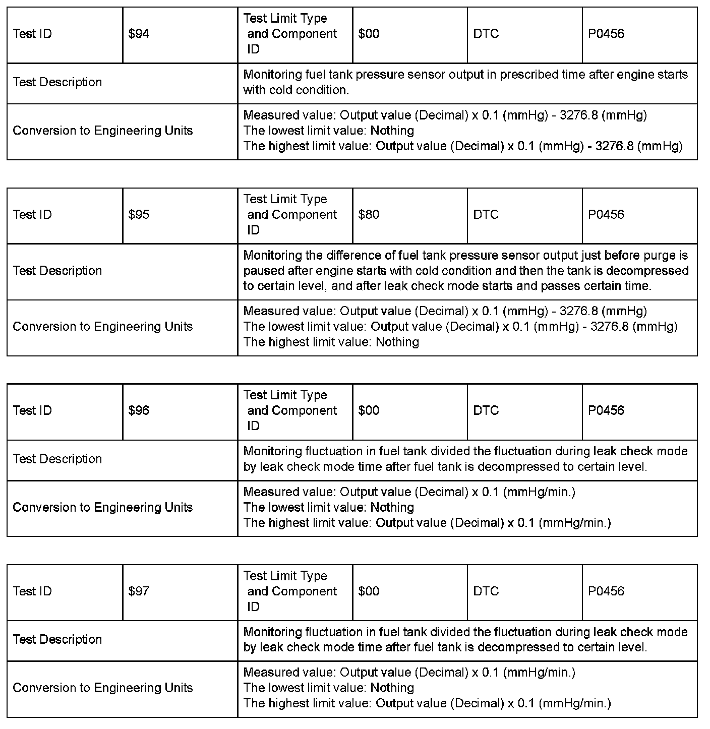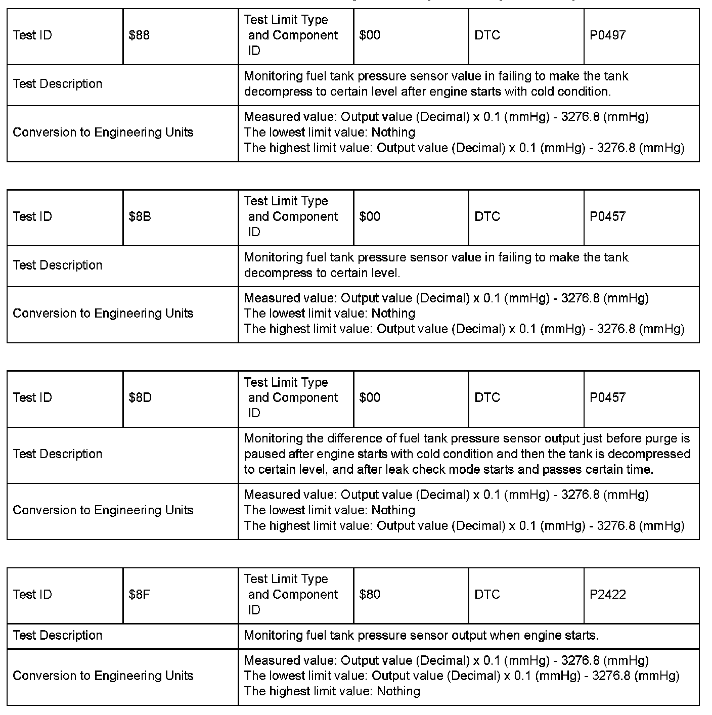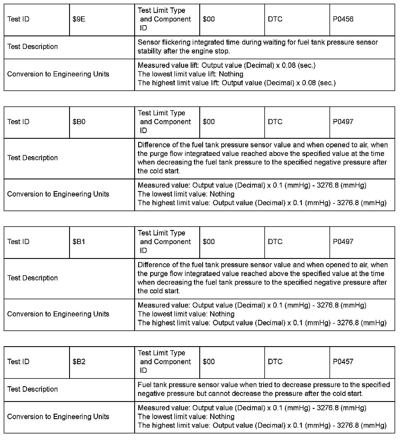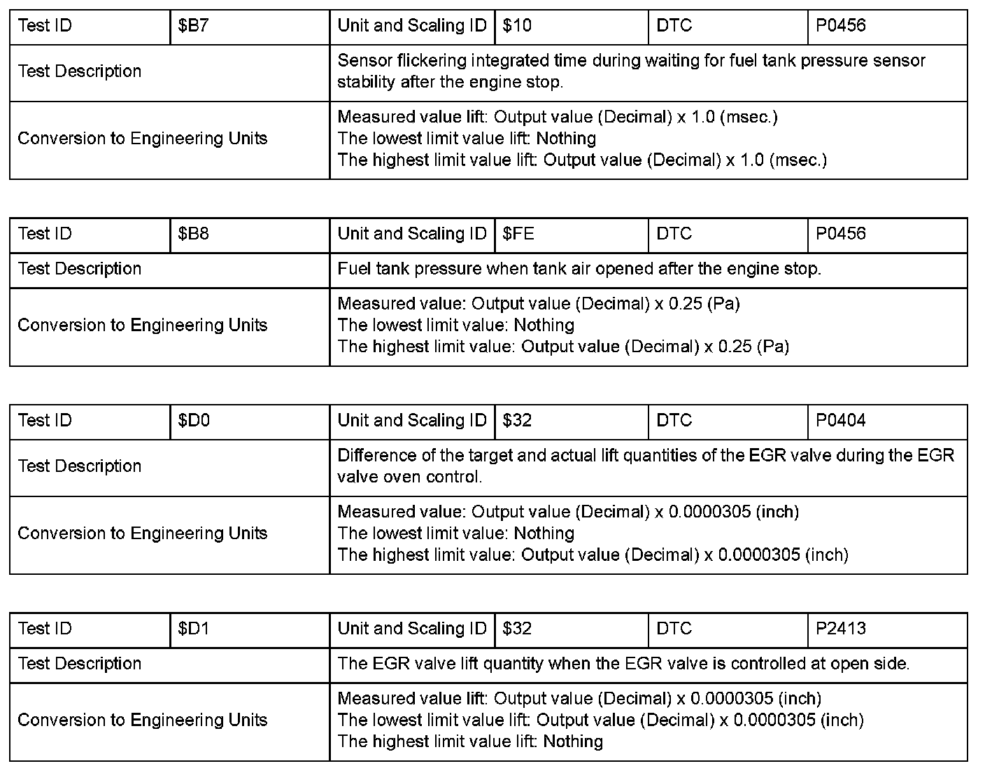 SAE J1979 Mode/Service $06 Information by Test ID (for Group I and 2)
