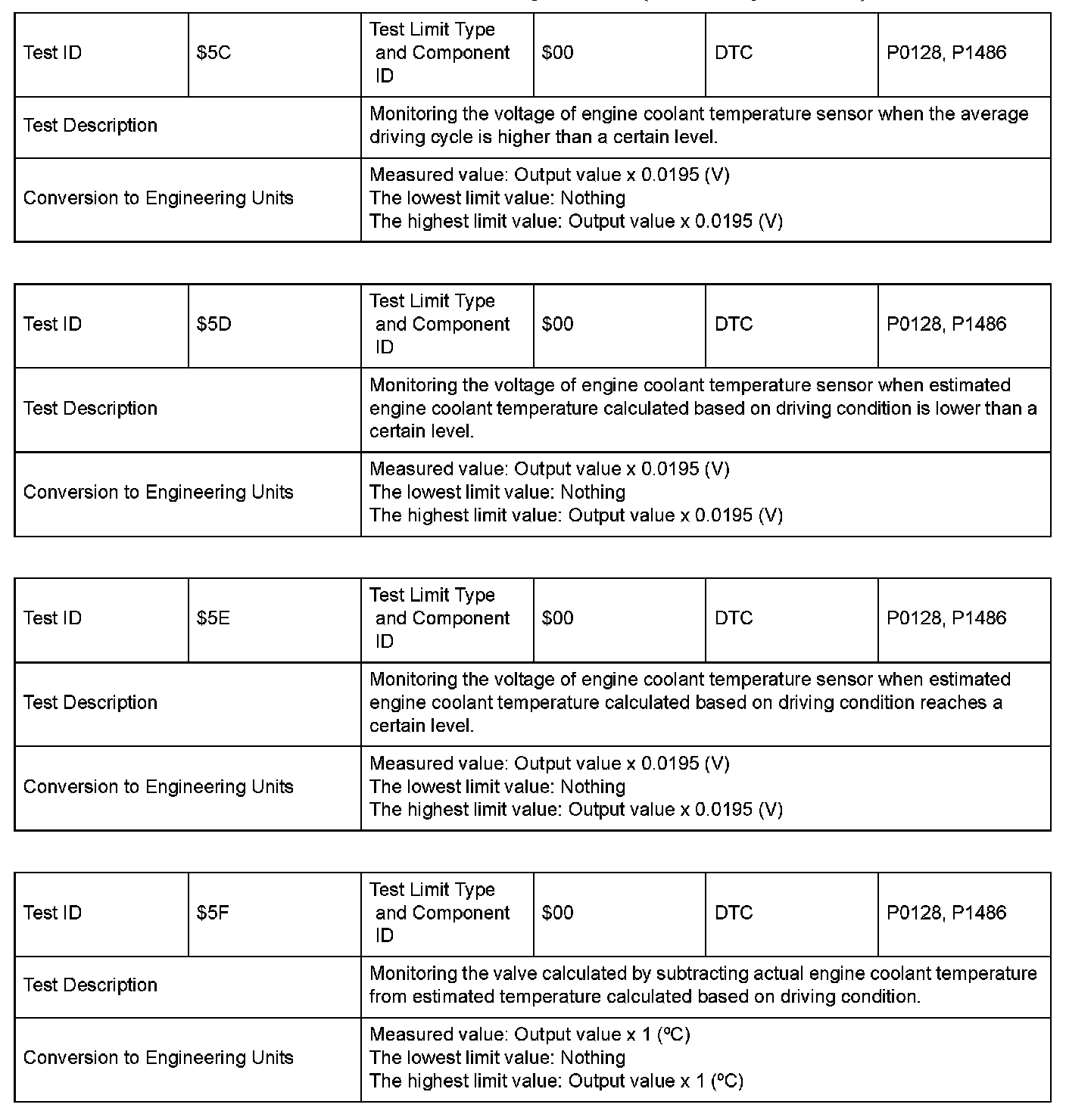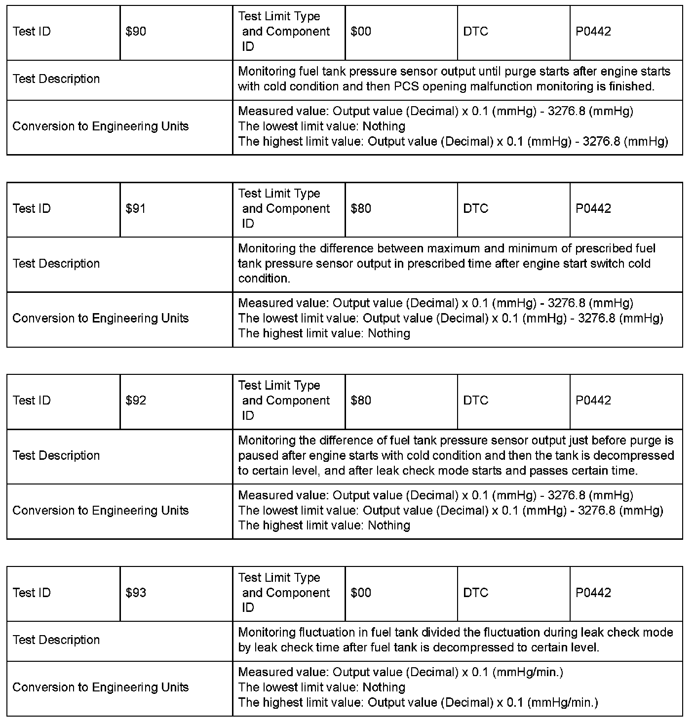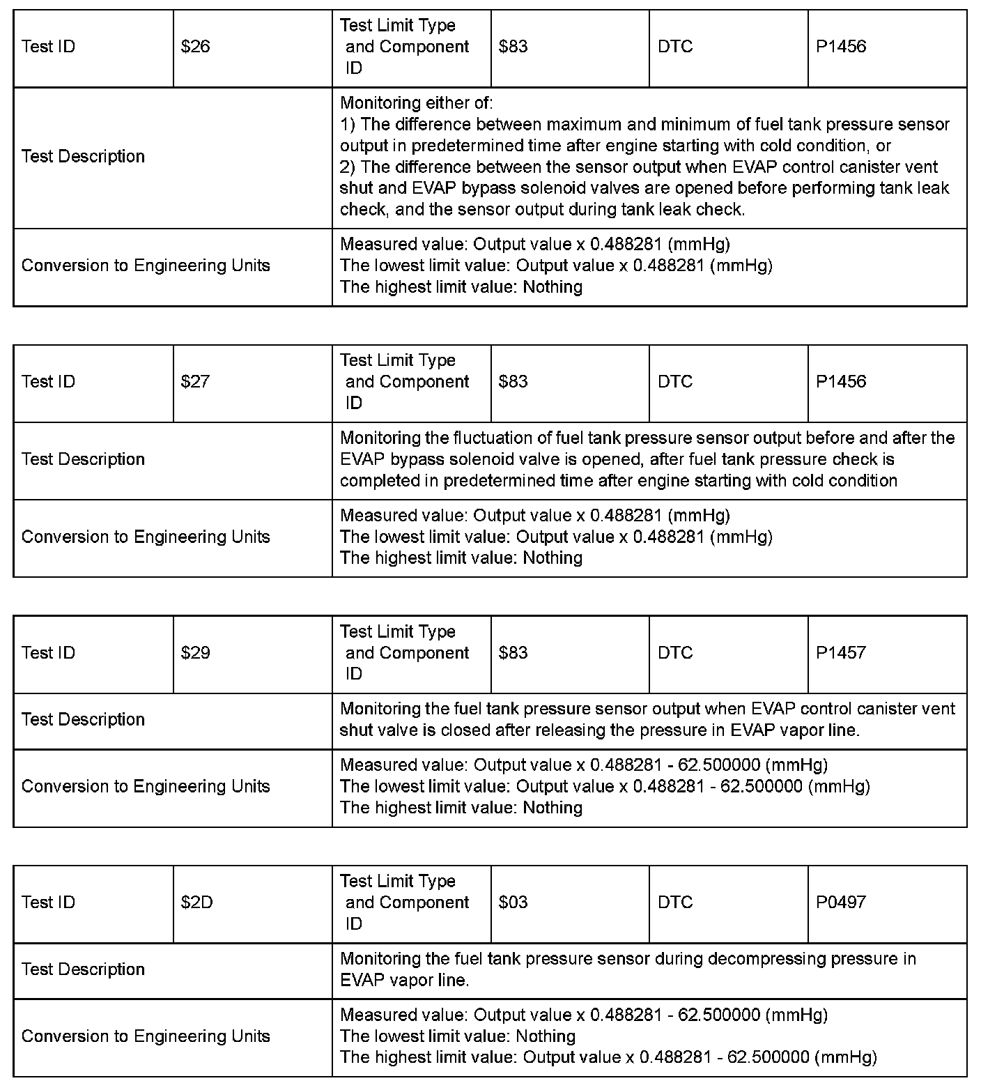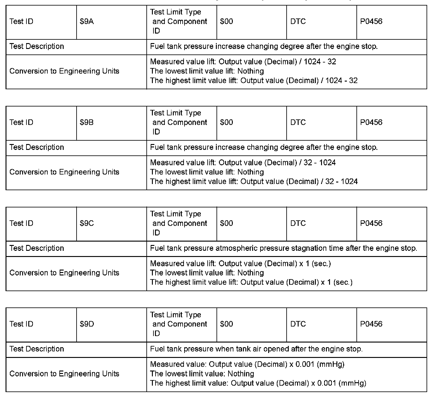 SAE J1979 Mode/Service $06 Information by Test ID (for Group I and 2)