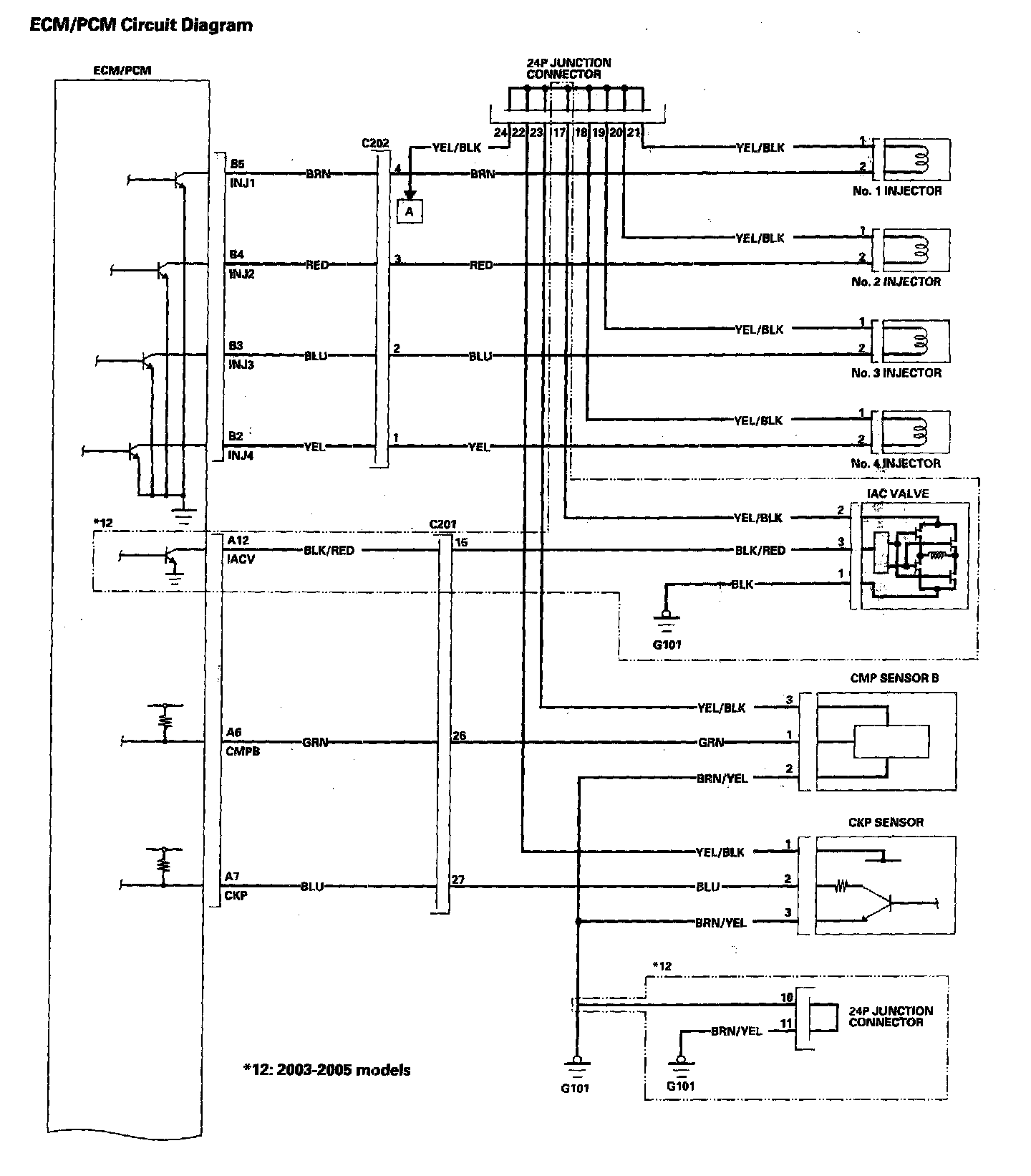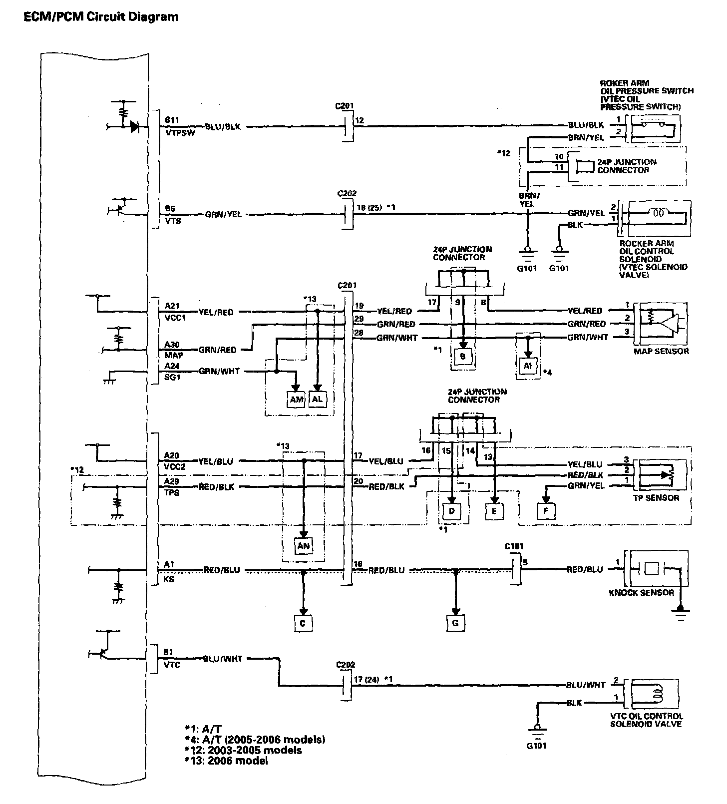 Home >> Honda >> 2006 >> Accord L4-2.4L >> Repair and Diagnosis >> Powertrain Management >> Diagrams >> Electrical Diagrams >> Control Module Circuit Diagrams >> ECM/PCM Circuit Diagrams