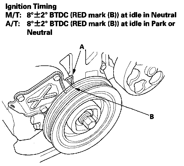 Ignition Timing Inspection1. Connect the Honda Diagnostic System (HDS) to the data link connector (DLC), and check for DTCs. If a DTC is present, diagnose and repair the cause before inspecting the ignition timing.