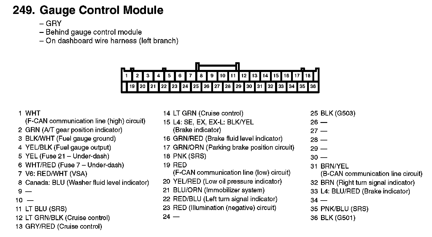 249. Gauge Control Module: