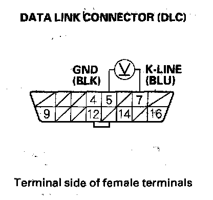 3. Measure voltage between DLC terminals No. 5 and No. 16.