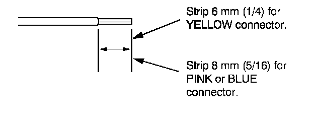 7. If you are using a yellow splice connector, strip about 6 mm (1/4 inch) of insulation off the ends of both wires. If you are using a pink or blue splice connector, strip off about 8 mm (5/16 inch) of insulation.