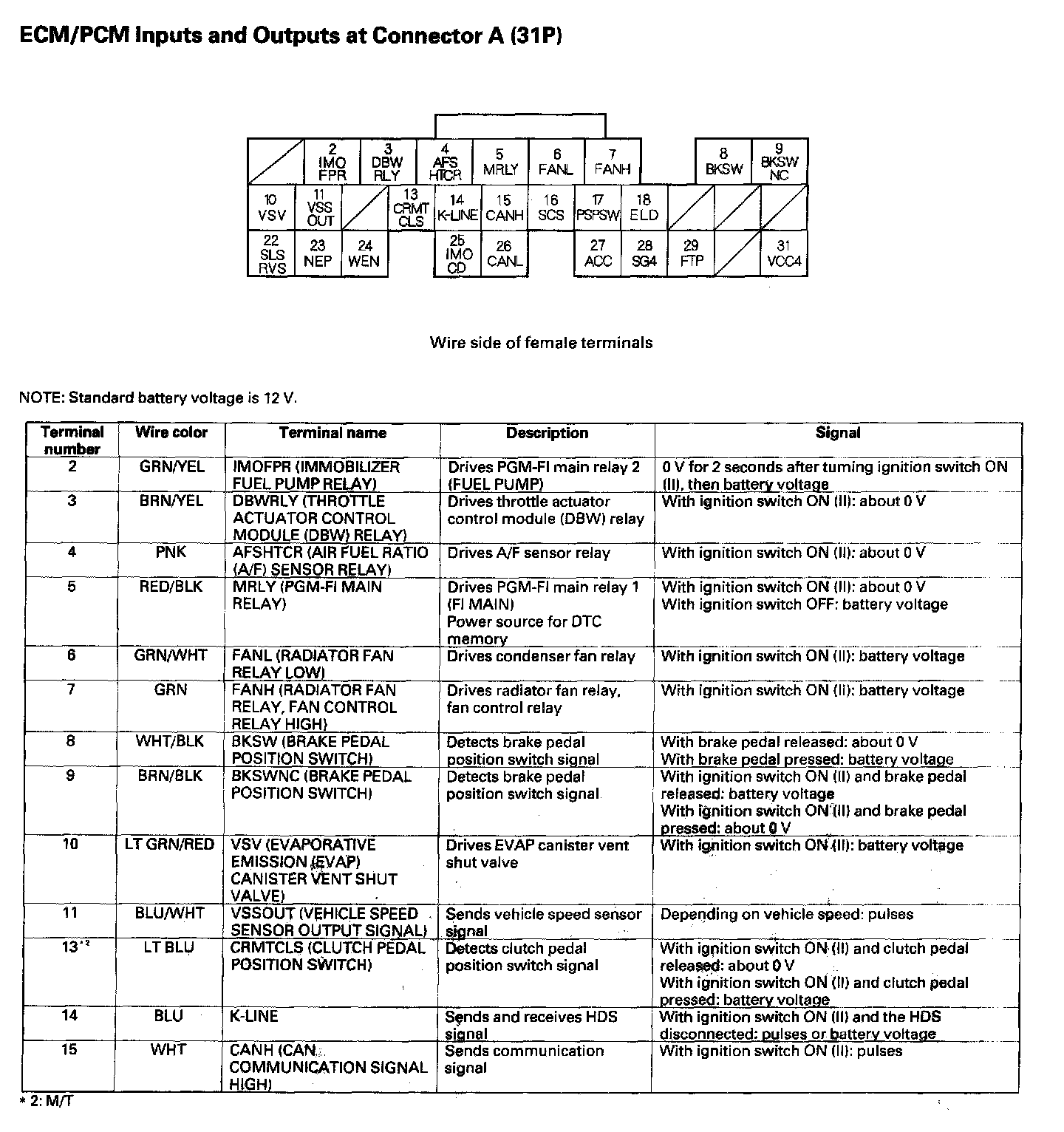 ECM/PCM Inputs And Outputs At Connector A (31P) Part 1: