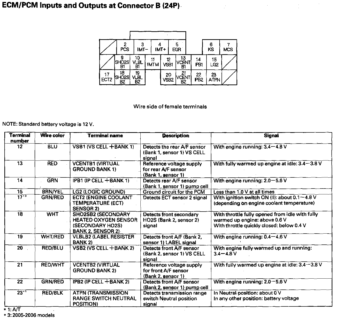 Home >> Honda >> 2006 >> Accord V6-3.0L >> Repair and Diagnosis >> Powertrain Management >> Computers and Control Systems >> Engine Control Module >> Testing and Inspection >> Pinout Values and Diagnostic Parameters