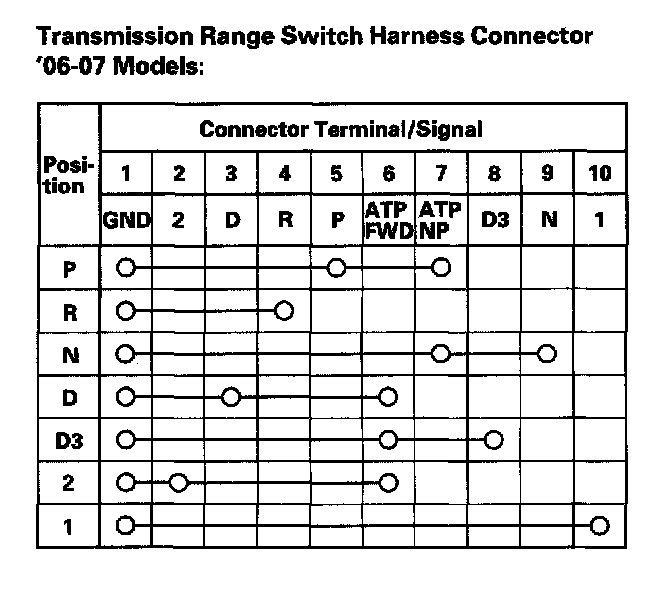 Home >> Honda >> 2006 >> Accord V6-3.0L >> Repair and Diagnosis >> Powertrain Management >> Computers and Control Systems >> Transmission Position Sensor/Switch >> Testing and Inspection