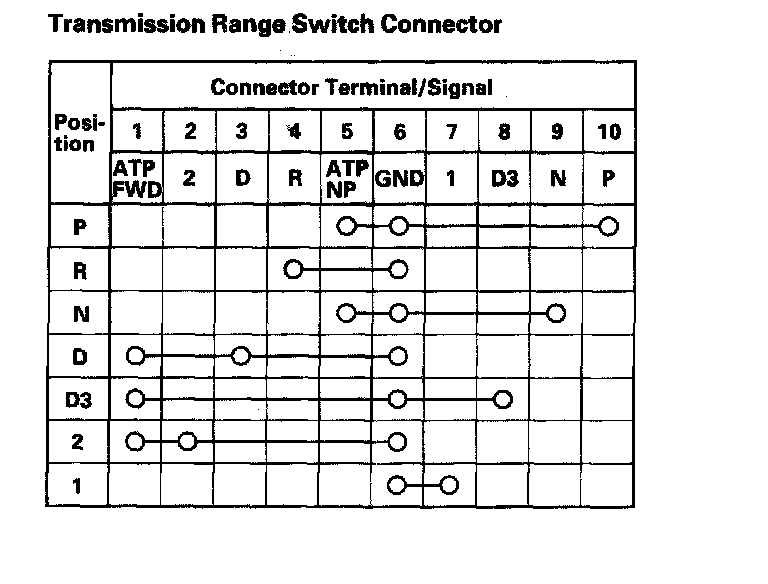 Transmission Range Switch Connector: