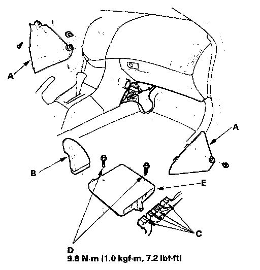 12. Remove the bolts (D), then remove the ECM/PCM (E).