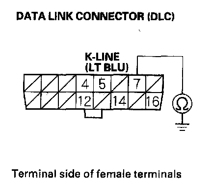 9. Check for continuity between DLC terminal No. 7 and body ground.