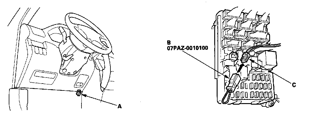 3. Connect the SCS service connector (B) to the yellow MES 2P connector (C). Do not use a jumper wire.