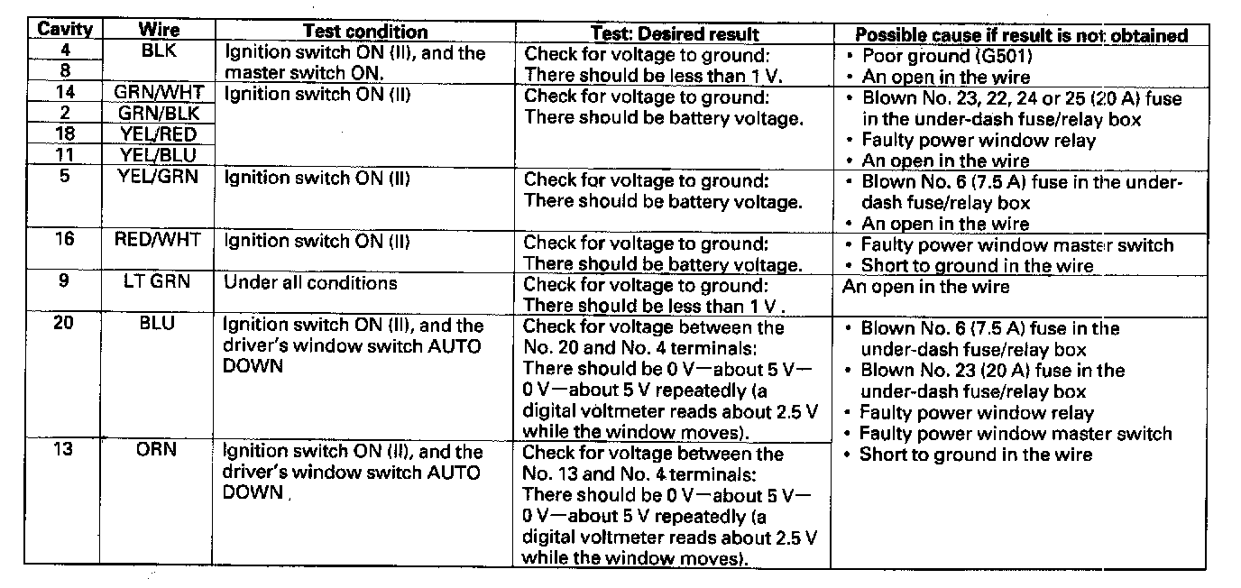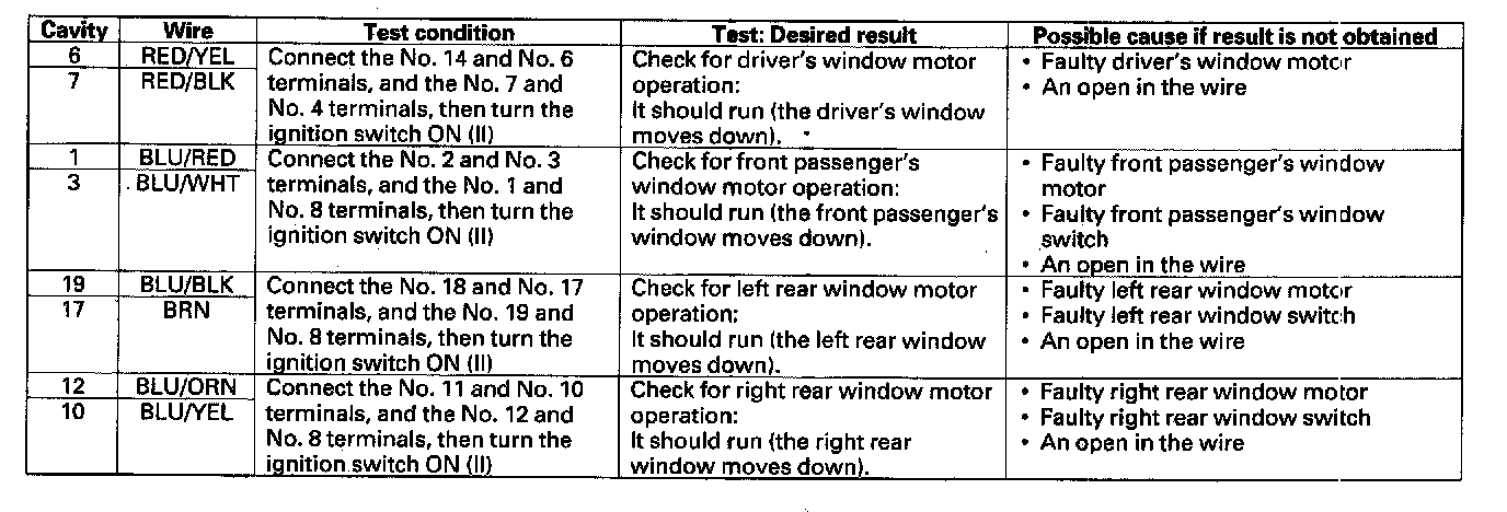 Home >> Honda >> 2006 >> CR-V 2WD L4-2.4L >> Repair and Diagnosis >> Windows and Glass >> Windows >> Power Window Switch >> Testing and Inspection >> Master Switch Input Test