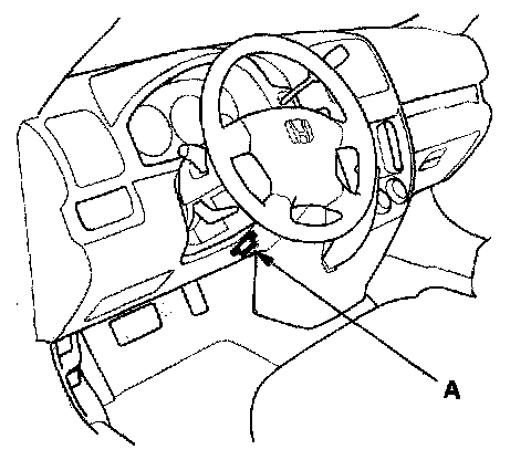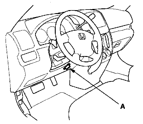 2. Connect the HDS or the Honda interface module (HIM) to the data link connector (DLC) (A) located under the driver's side of the dashboard.