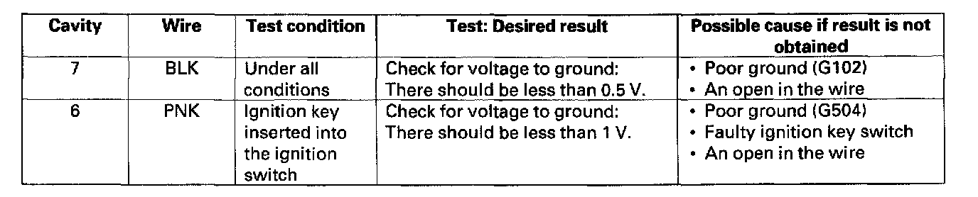 6. Reconnect the connectors to the immobilizer-keyless control unit, and make these input tests at the connector.