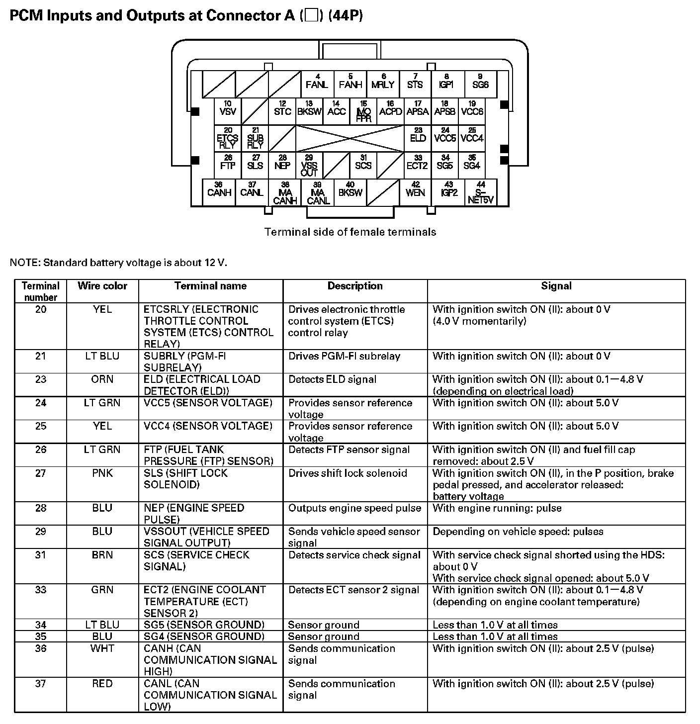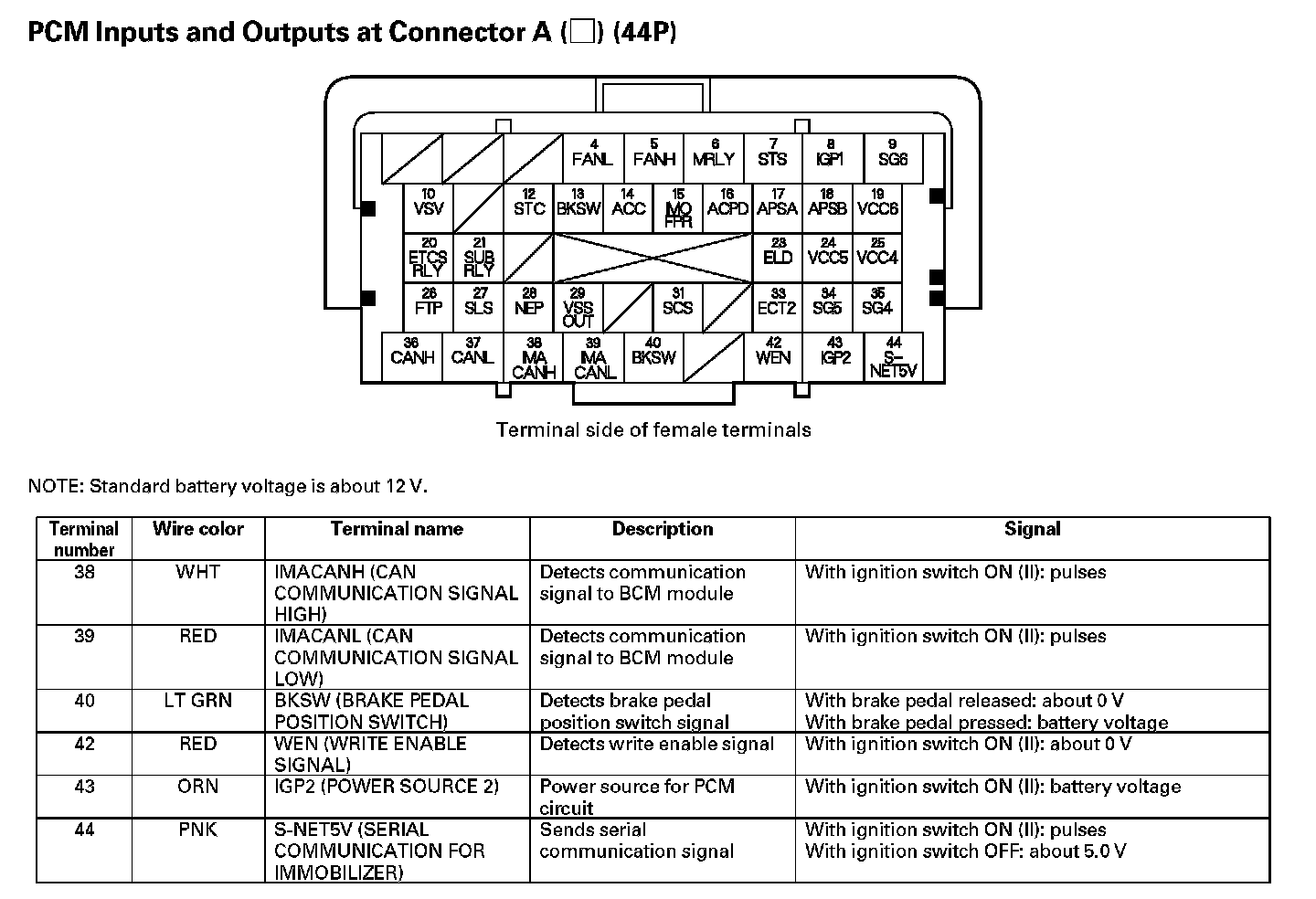 PCM Inputs And Outputs At Connector A (44P) Part 3: