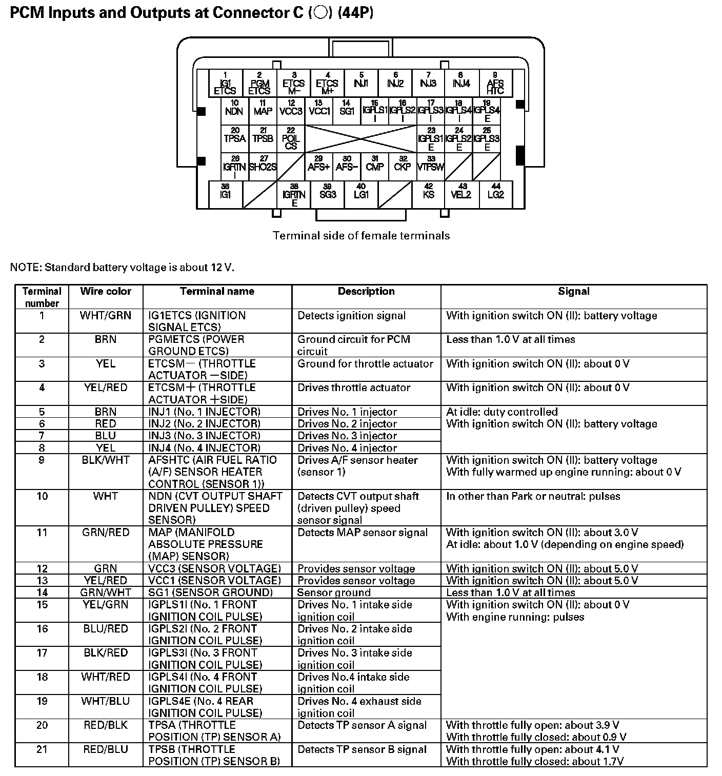 PCM Inputs And Outputs At Connector C (44P) Part 1: