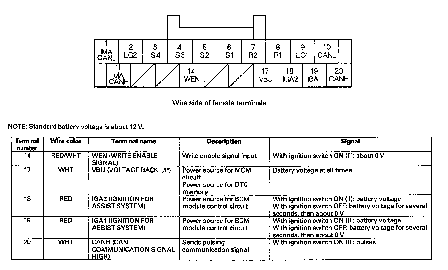 MCM Inputs and Outputs at Connector (20P):