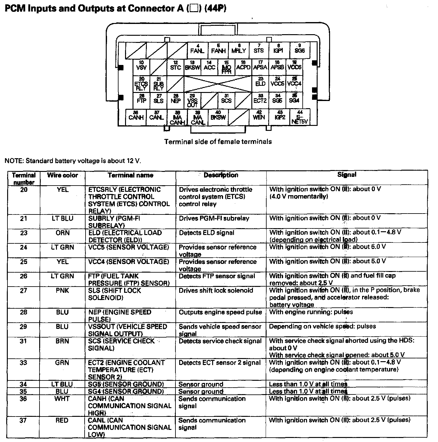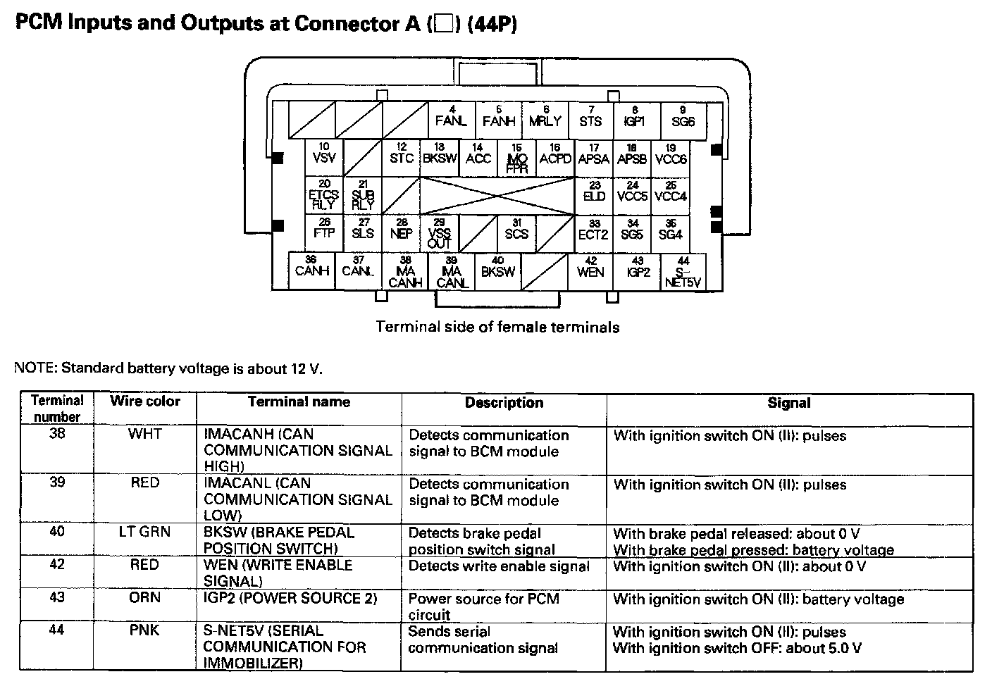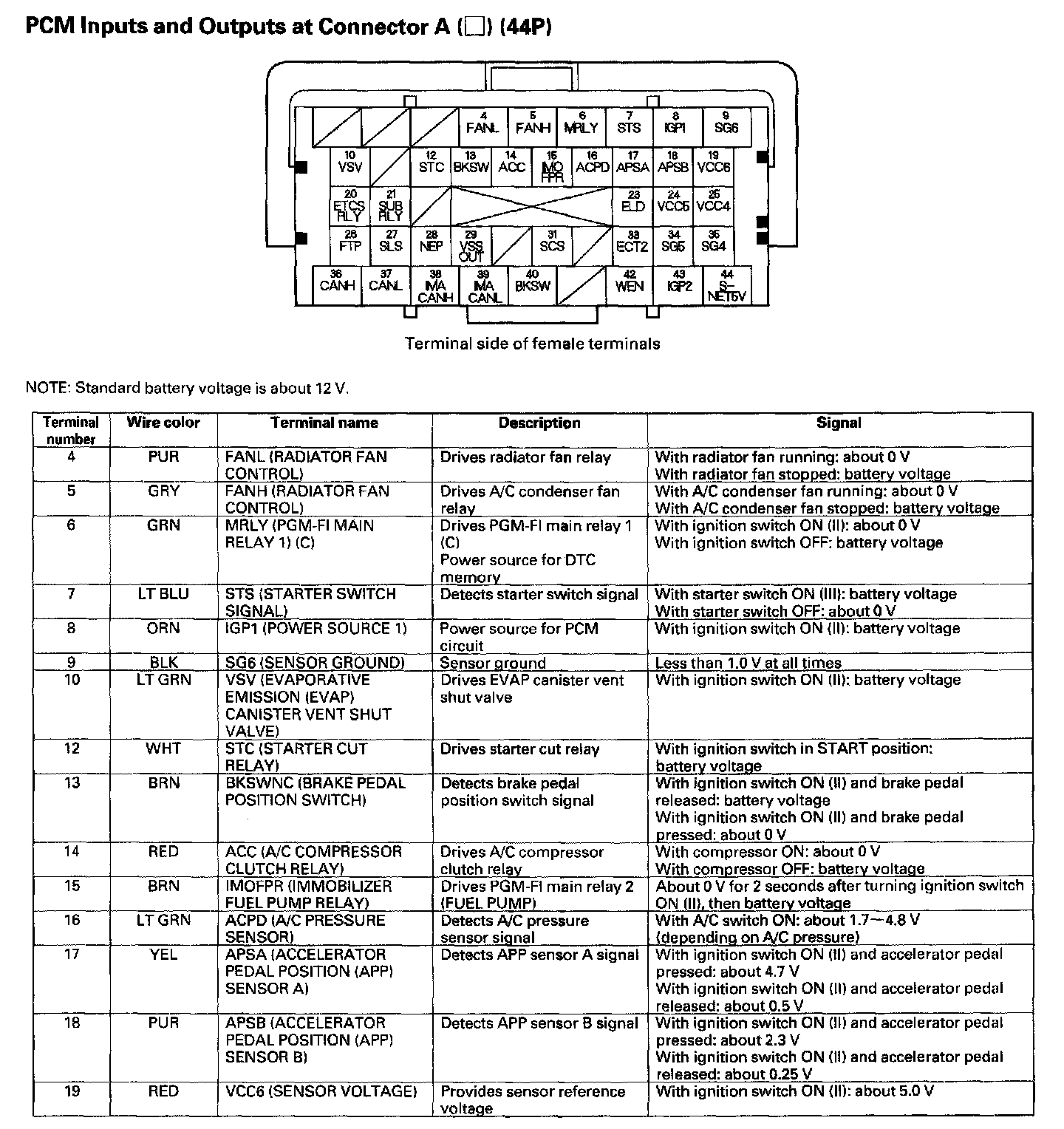PCM Inputs And Outputs At Connector A (44P) Part 3: