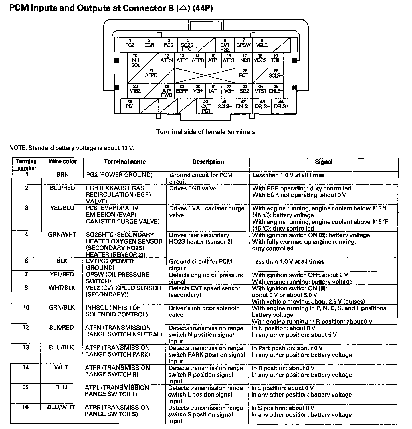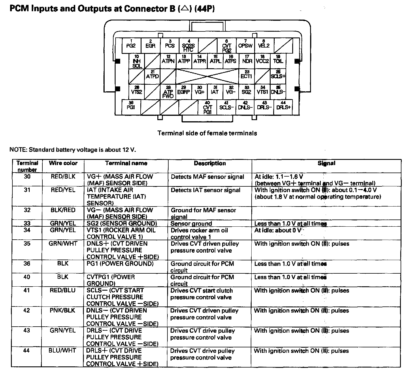 PCM Inputs And Outputs At Connector B (44P) Part 1: