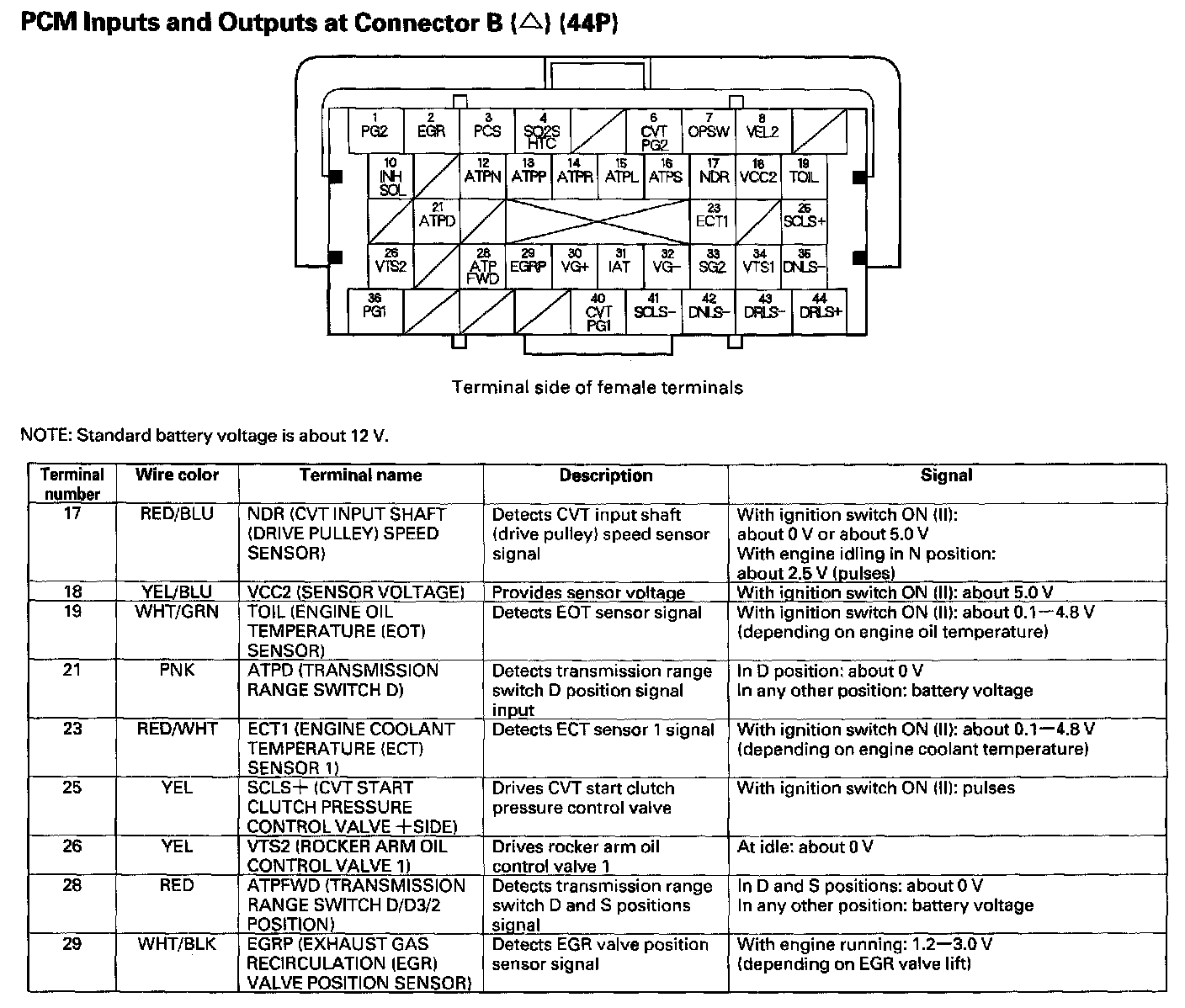 PCM Inputs And Outputs At Connector B (44P) Part 3: