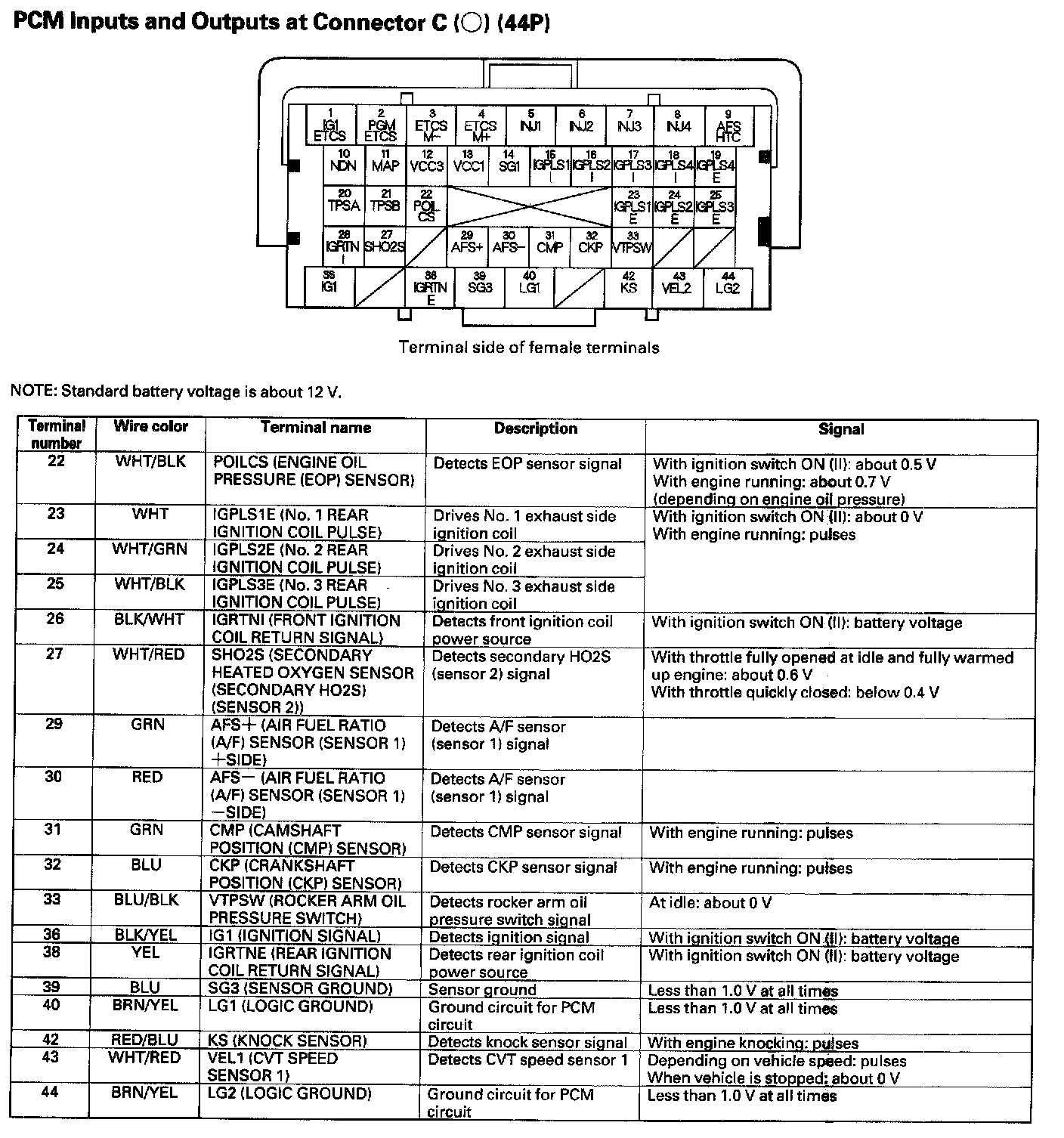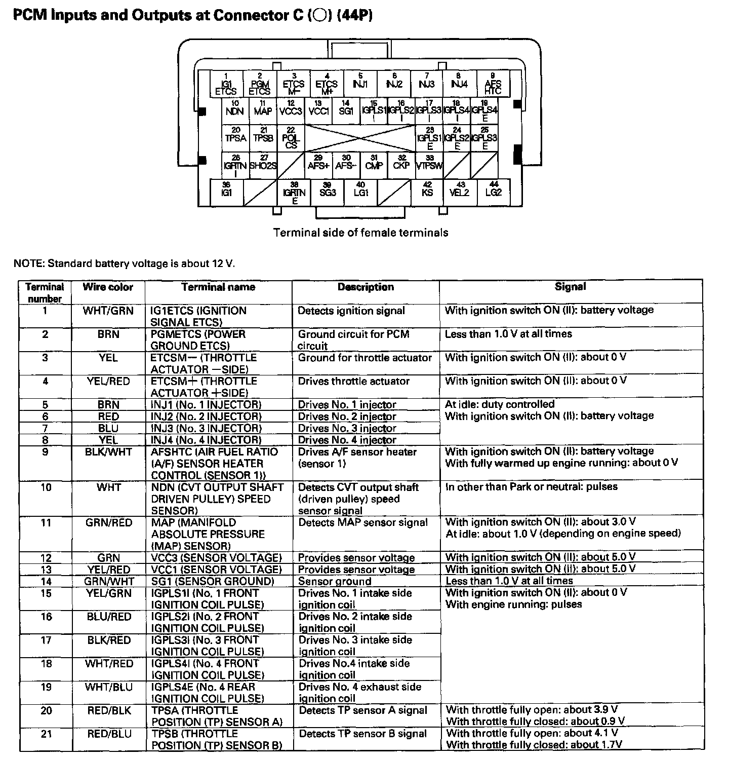 PCM Inputs And Outputs At Connector C (44P) Part 1: