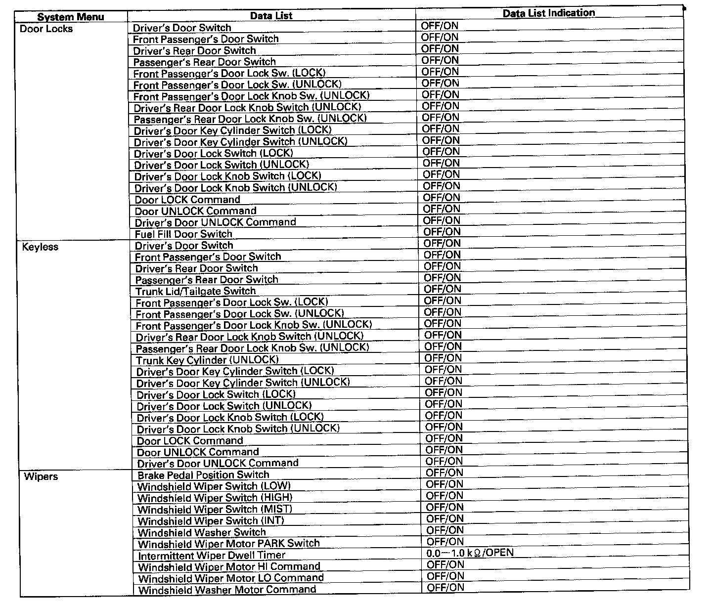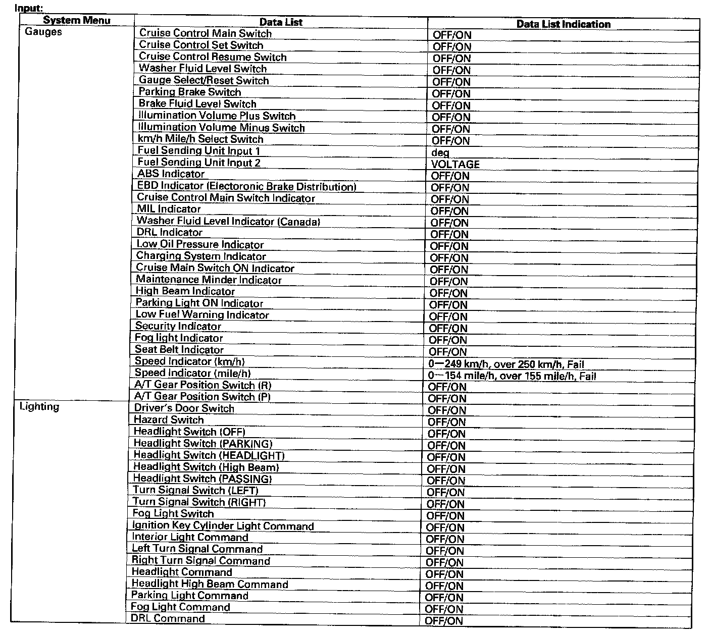 Certain inputs happen so quickly that the HDS cannot update fast enough. Hold the switch that is being tested while monitoring the Data List.