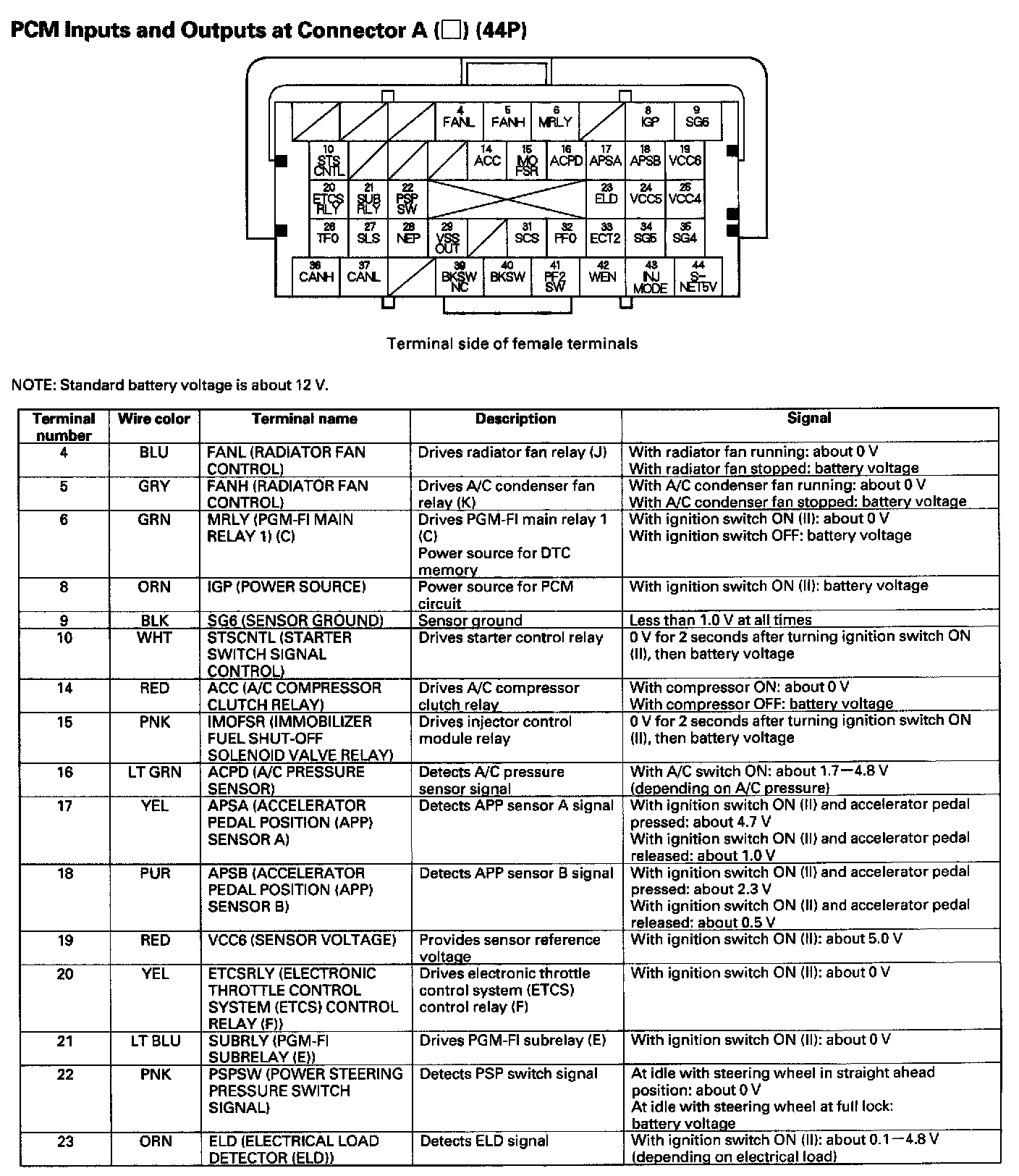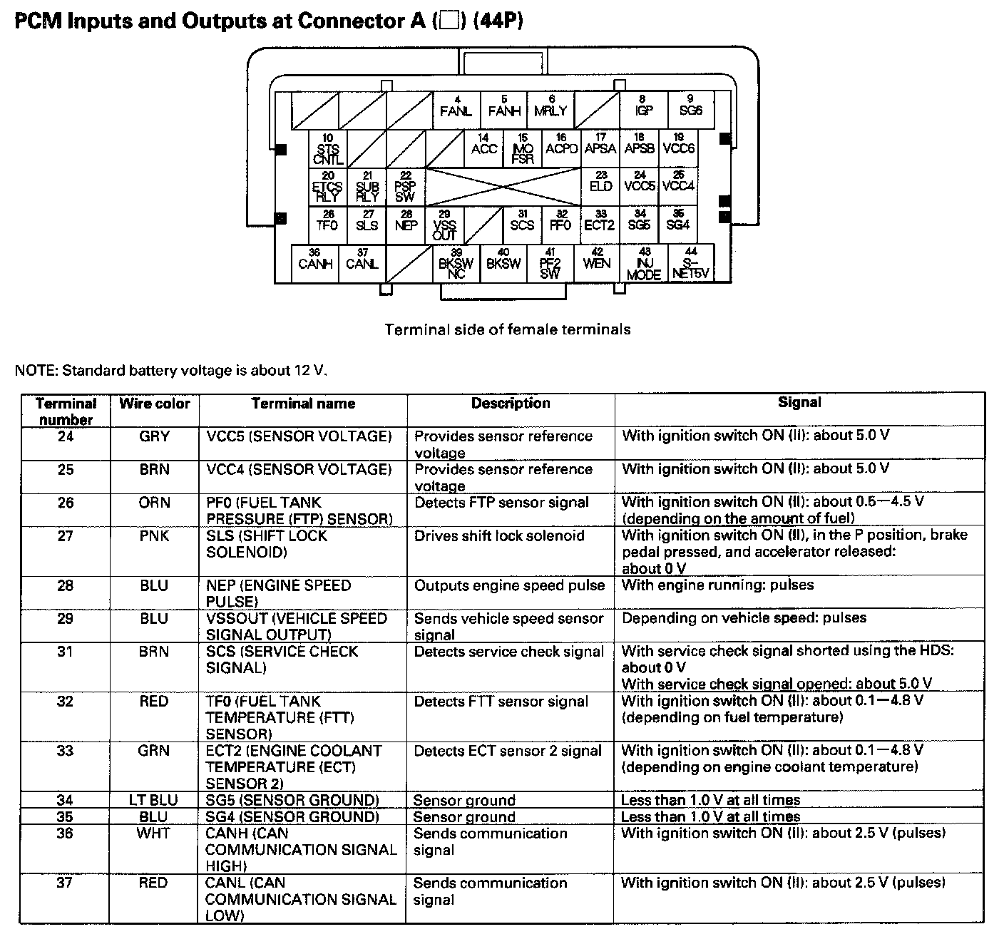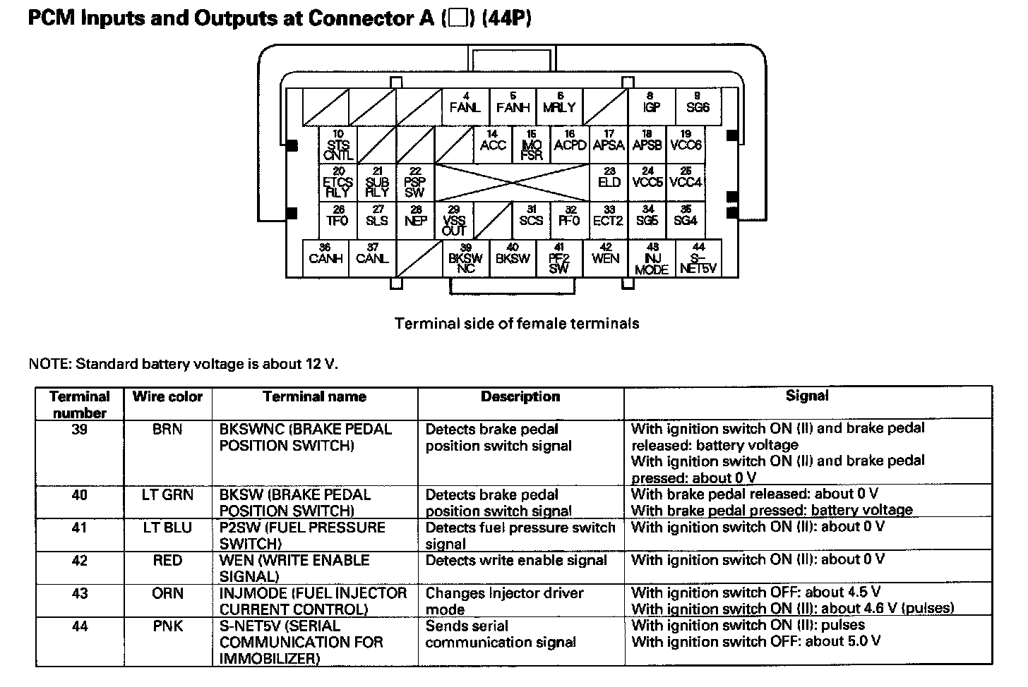 PCM Inputs And Outputs At Connector A (44P) Part 1: