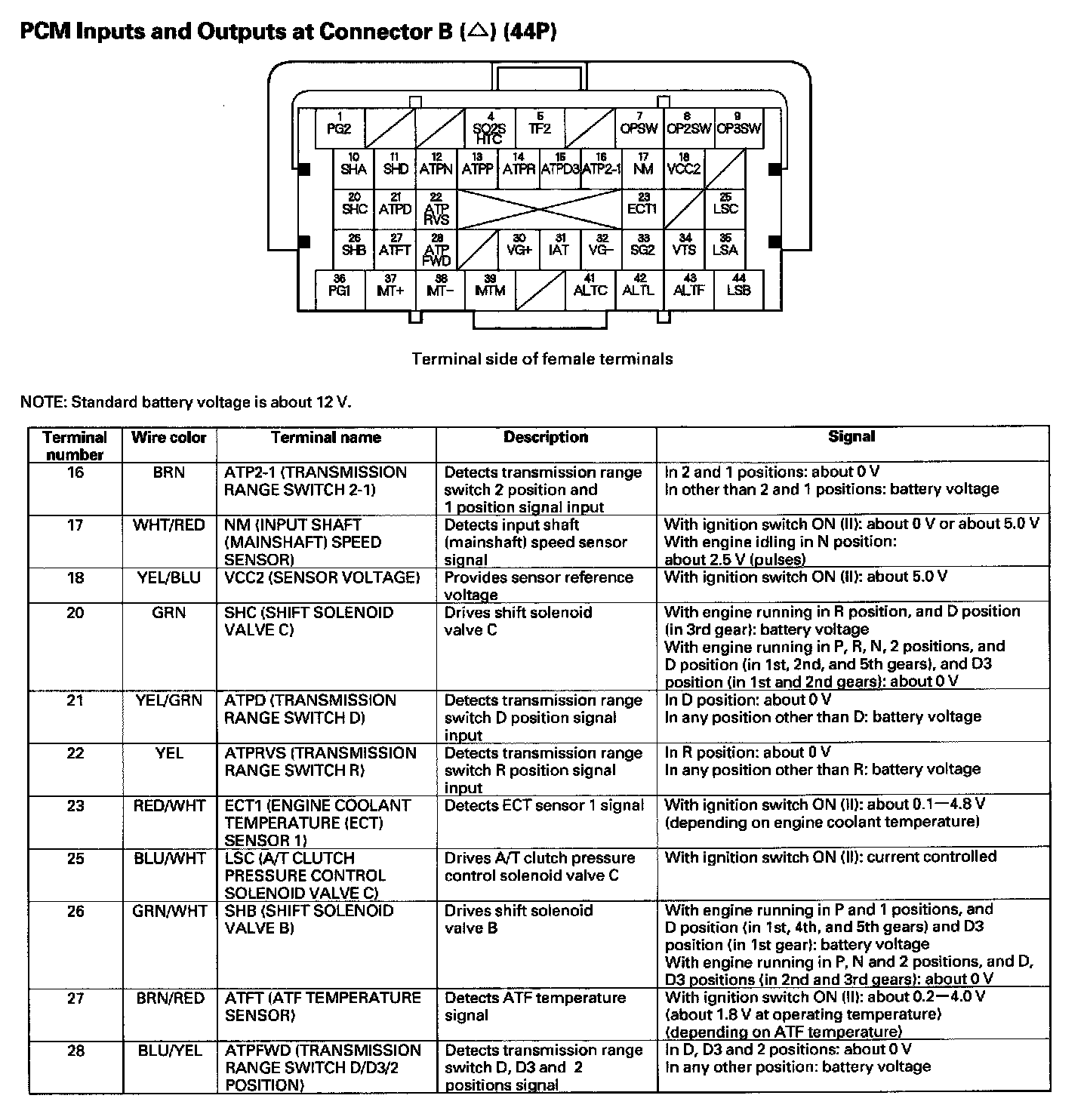 PCM Inputs And Outputs At Connector B (44P) Part 3: