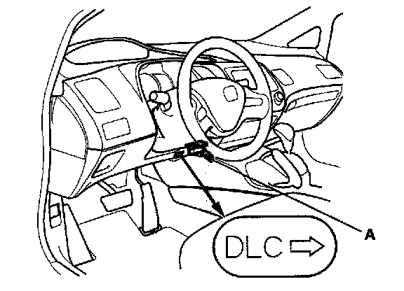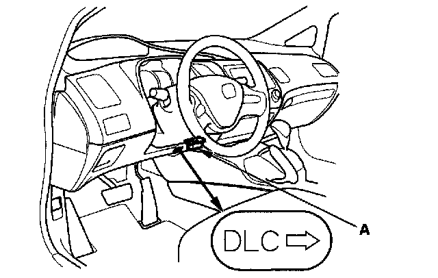 2. Connect the HDS to the data link connector (DLC) (A) located under the driver's side of the dashboard.