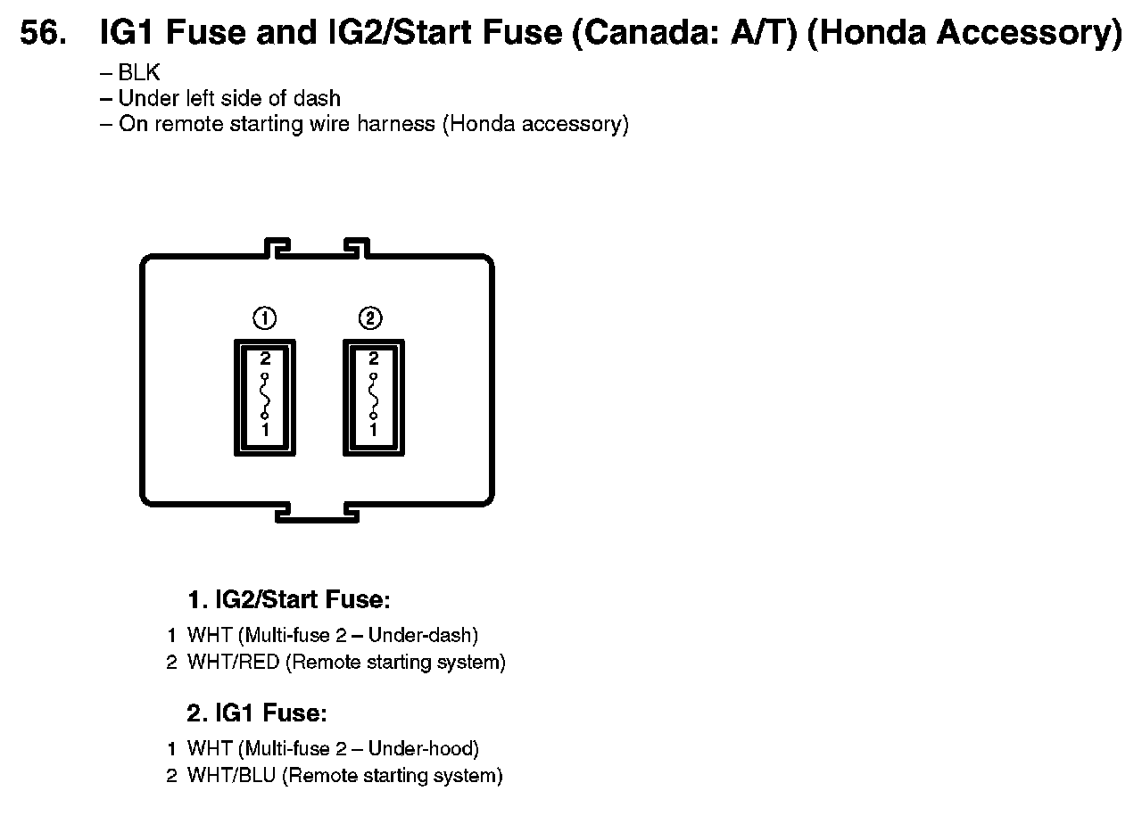 56. IG1 Fuse And IG2/Start Fuse (Canada: A/T) (Honda Accessory):