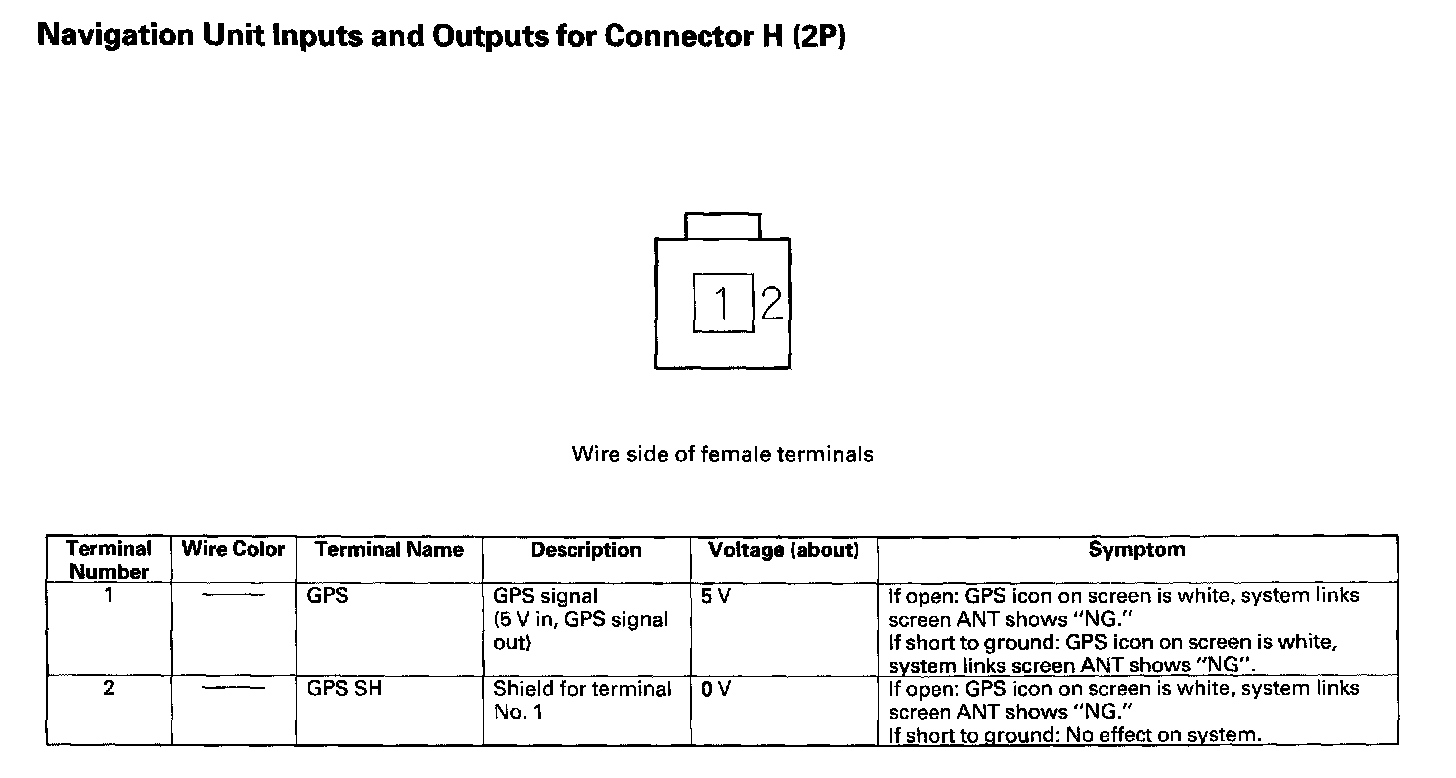 Navigation Unit Inputs And Outputs For Connector H (2P):