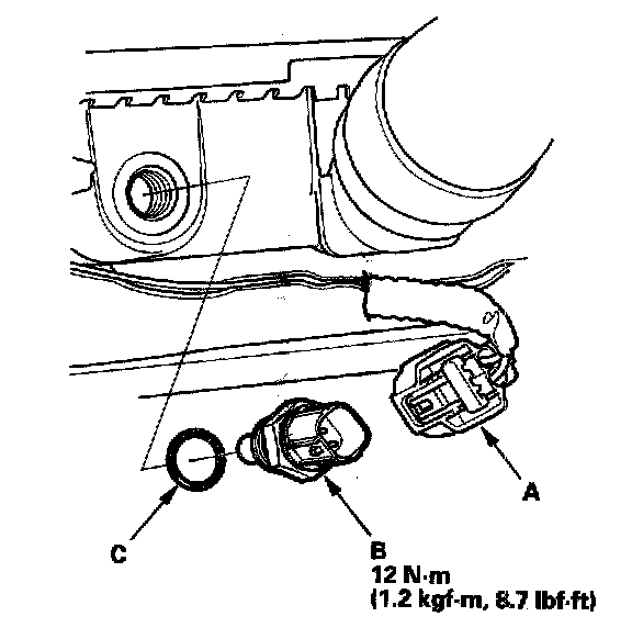 5. Install the sensor in the reverse order of removal with a new O-ring (C), then refill the radiator with engine coolant.