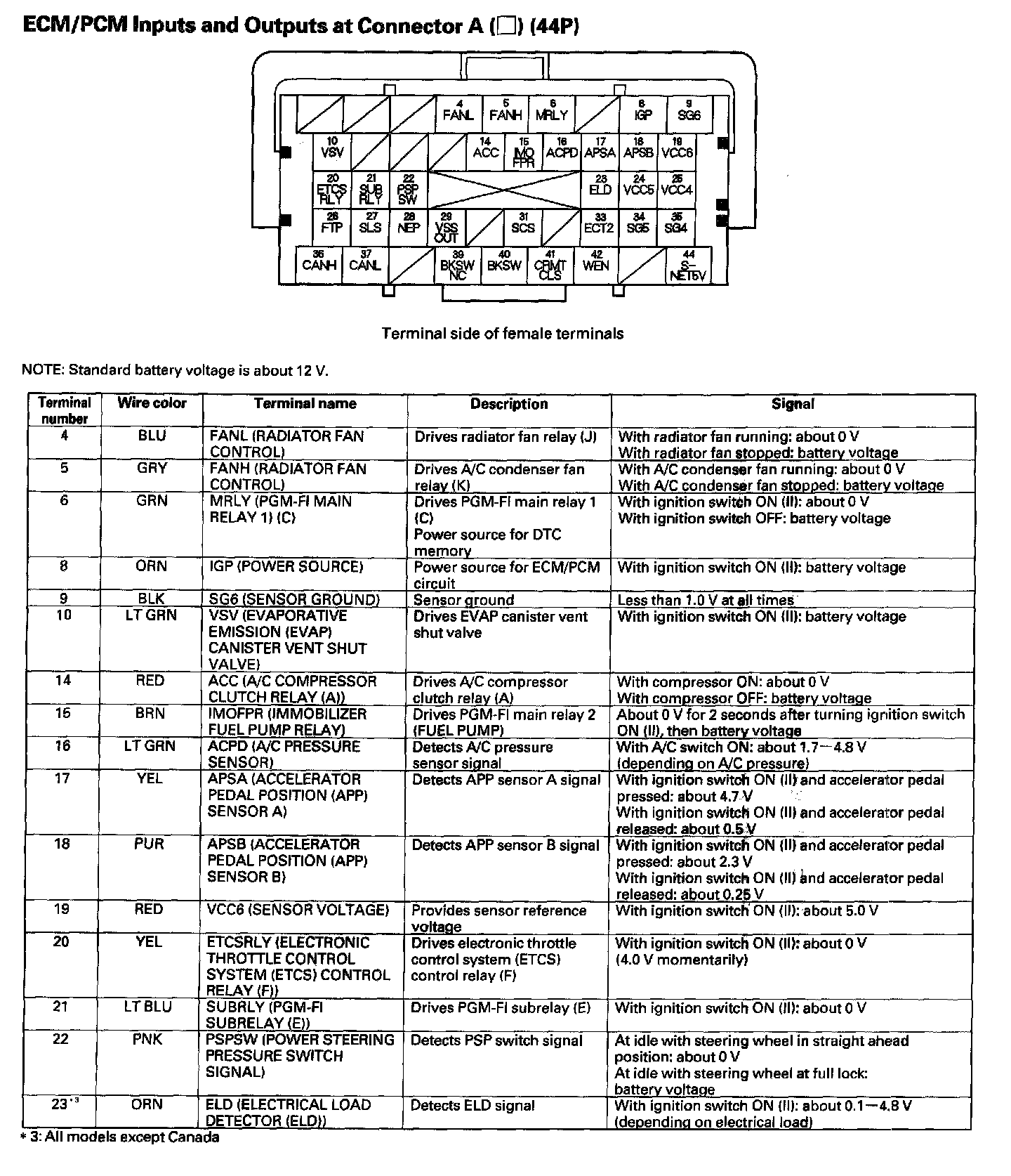 ECM/PCM Inputs And Outputs At Connector A (44P) Part 1: