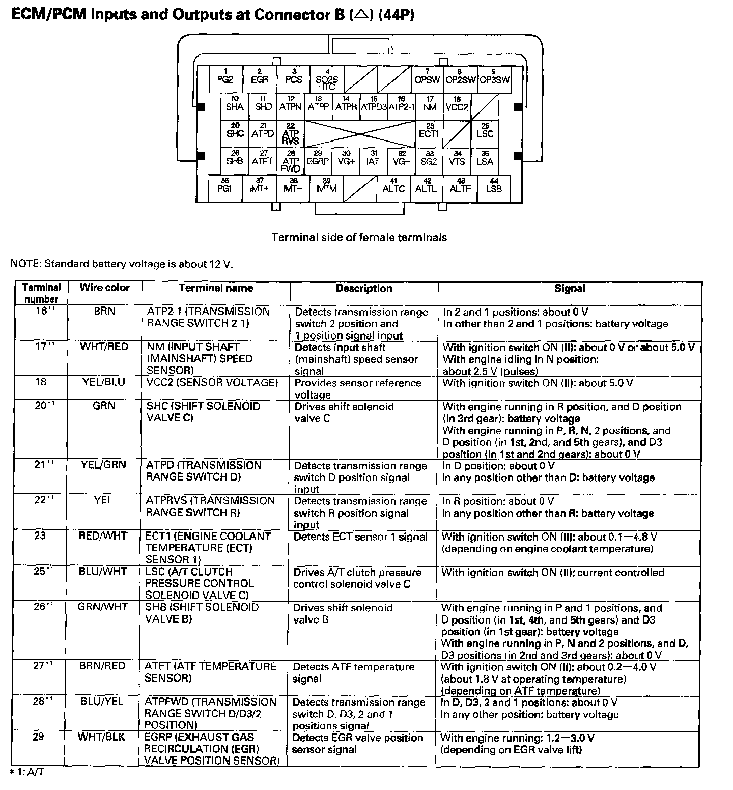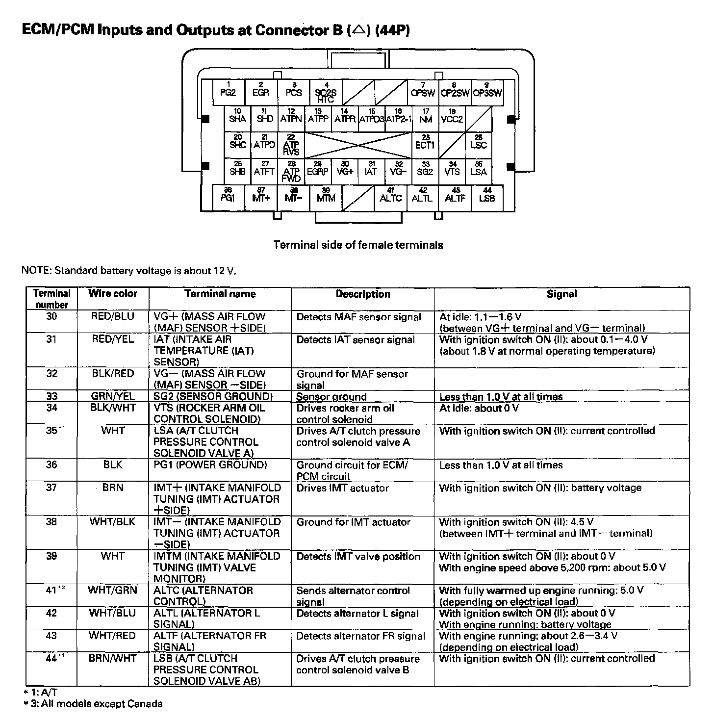 ECM/PCM Inputs And Outputs At Connector B (44P) Part 1: