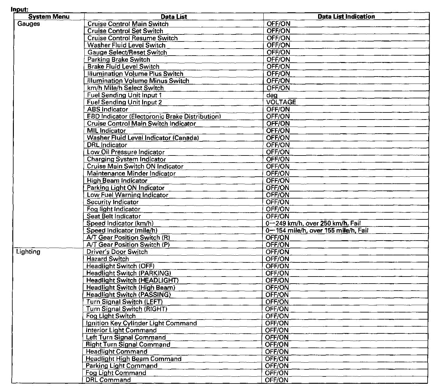 Certain inputs happen so quickly that the HDS cannot update fast enough. Hold the switch that is being tested while monitoring the Data List.