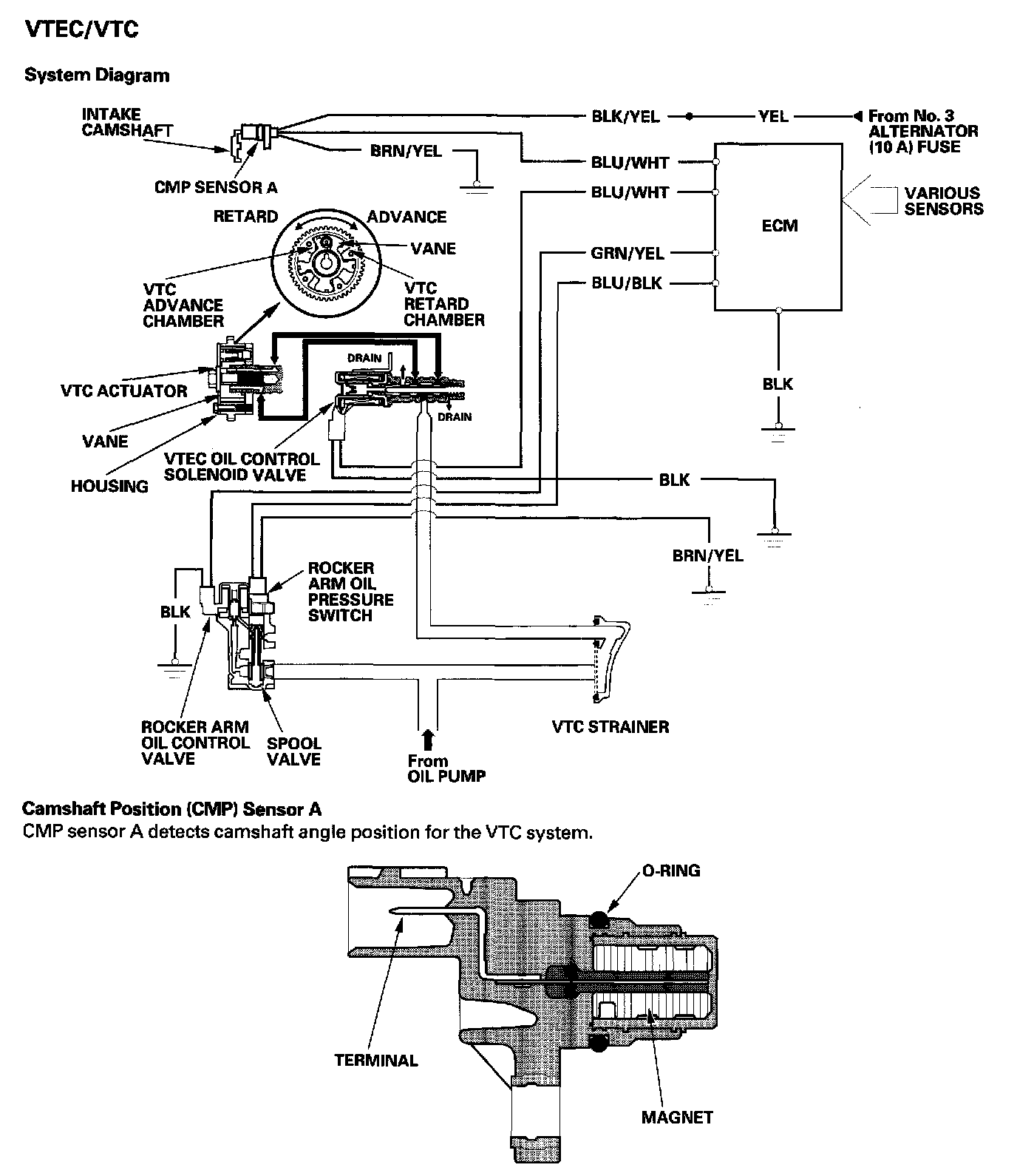 - The system reduces the cam advance at idle, stabilizes combustion, and reduces engine speed.