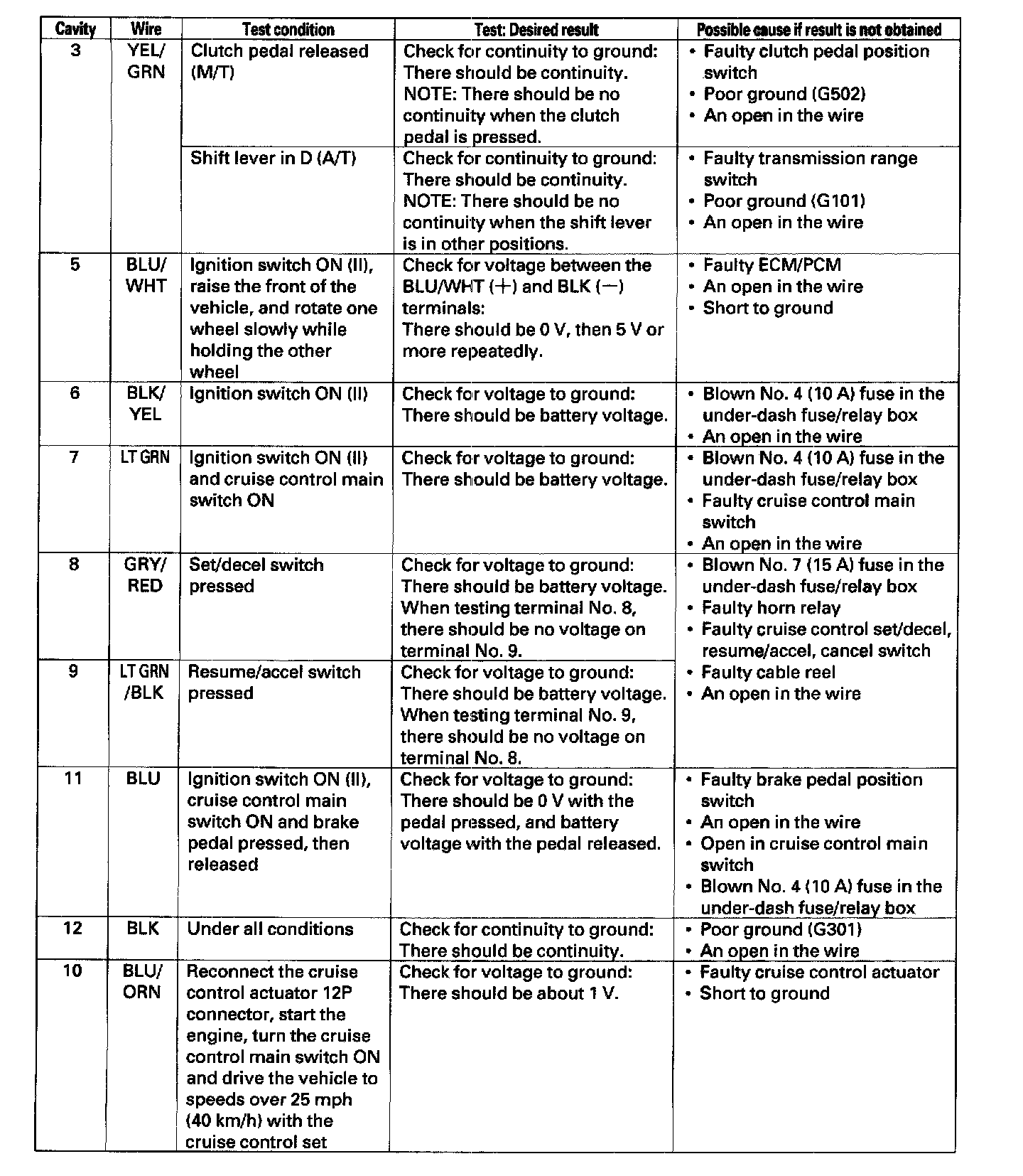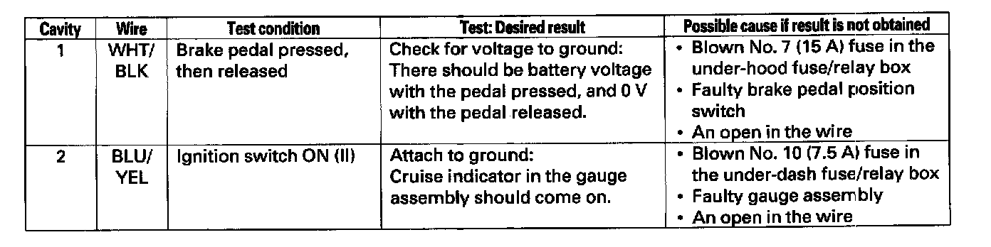 Home >> Honda >> 2006 >> Element 2WD L4-2.4L >> Repair and Diagnosis >> Cruise Control >> Cruise Control Servo >> Testing and Inspection