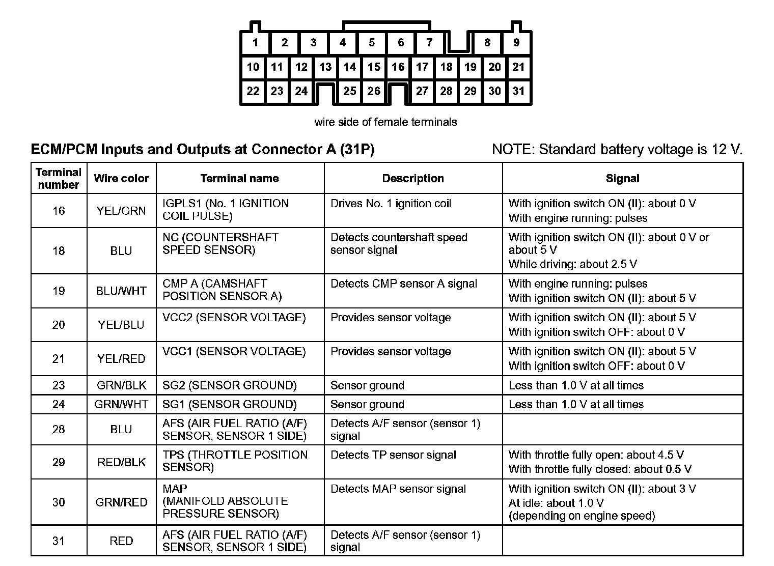 ECM/PCM Inputs And Outputs At Connector A (31P) (Part 1):